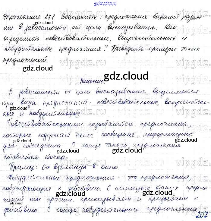 Ответ на задание 271 Учебник Русский язык за 4 (четвертый) класс Канакина, Горецкий Школа России 2015 Часть 1, 2
