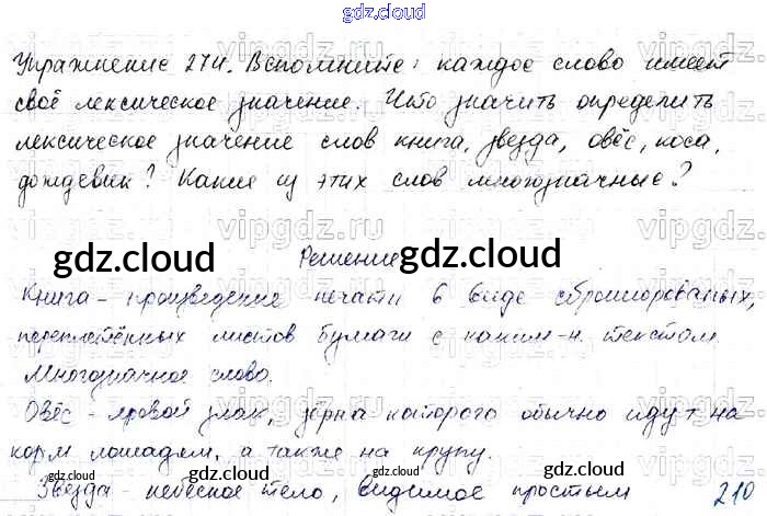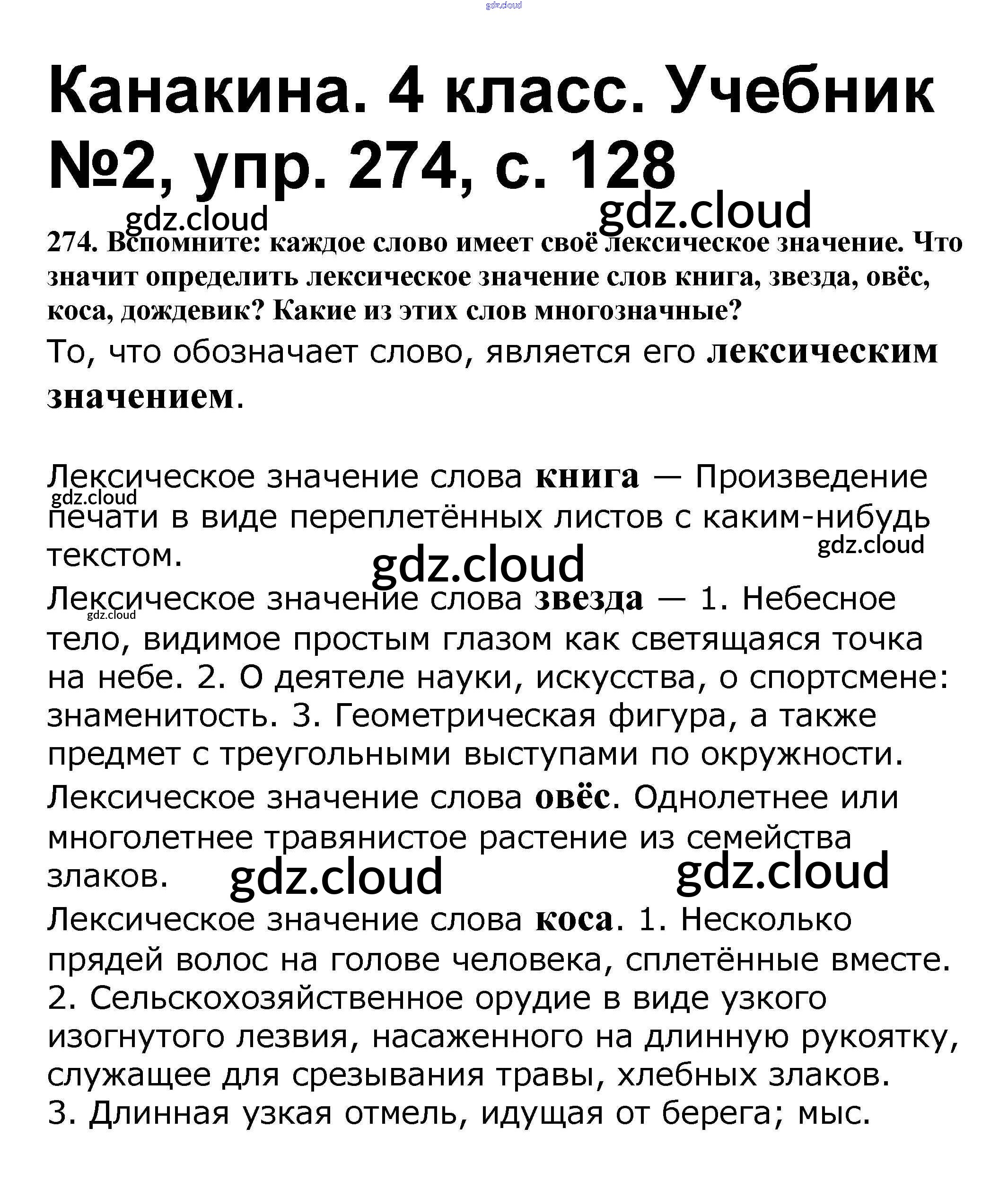Ответ на задание 274 Учебник Русский язык за 4 (четвертый) класс Канакина, Горецкий Школа России 2015 Часть 1, 2