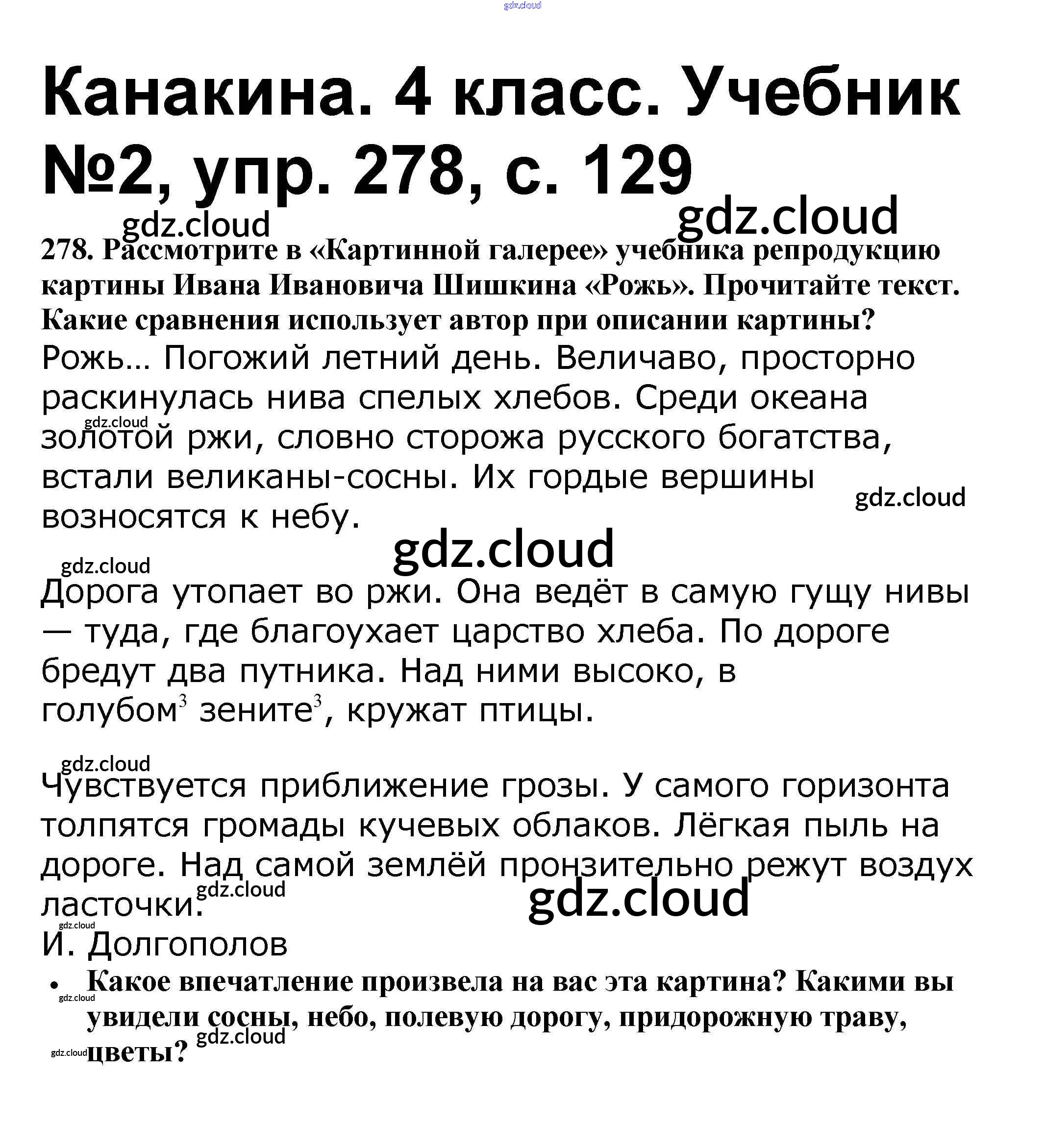 Ответ на задание 278 Учебник Русский язык за 4 (четвертый) класс Канакина, Горецкий Школа России 2015 Часть 1, 2