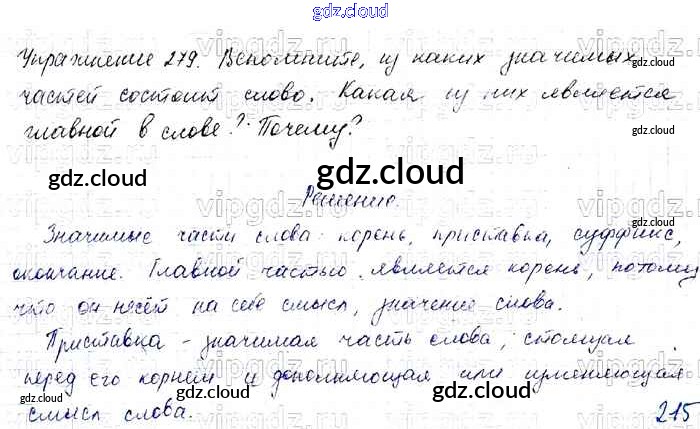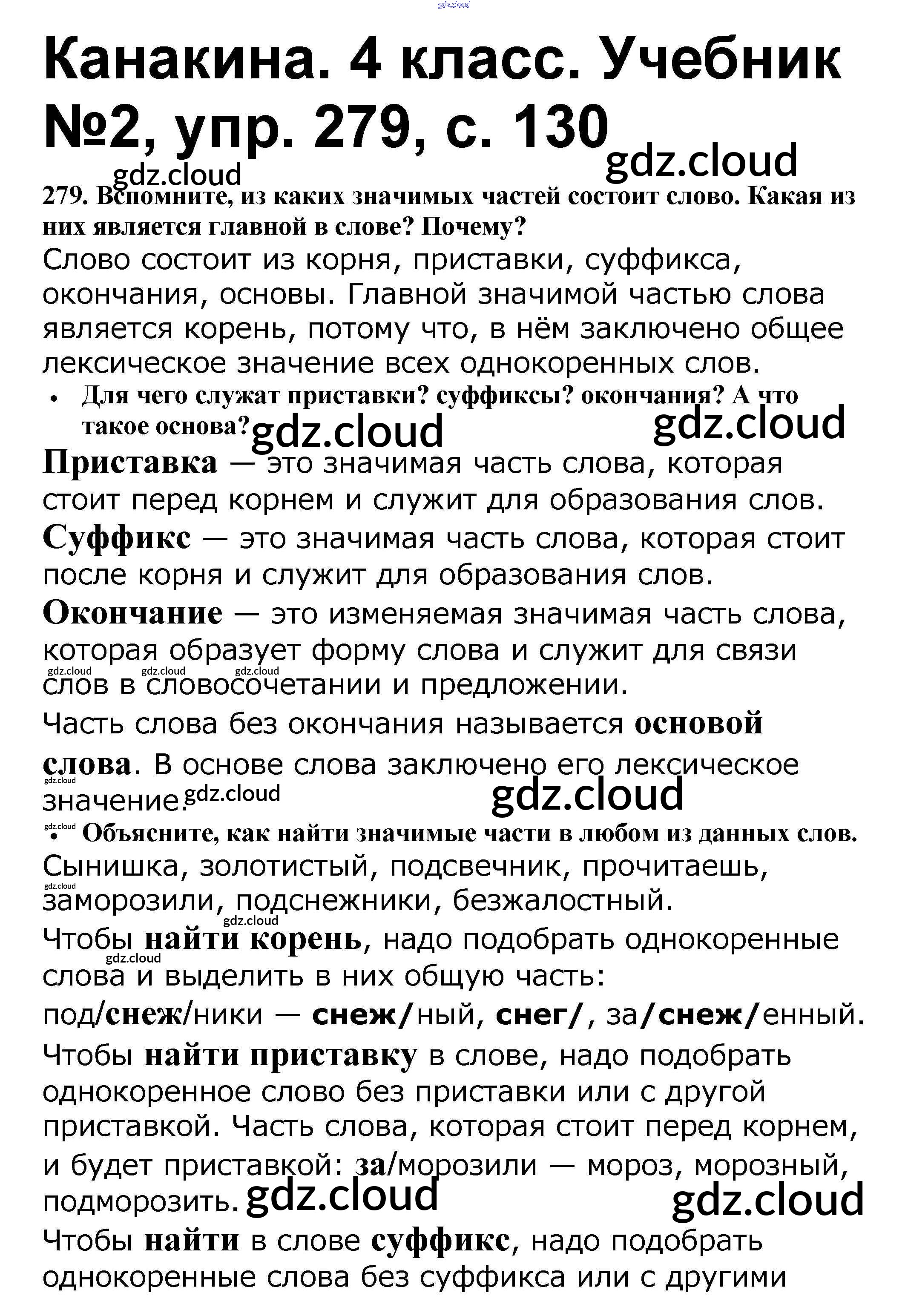 Ответ на задание 279 Учебник Русский язык за 4 (четвертый) класс Канакина, Горецкий Школа России 2015 Часть 1, 2
