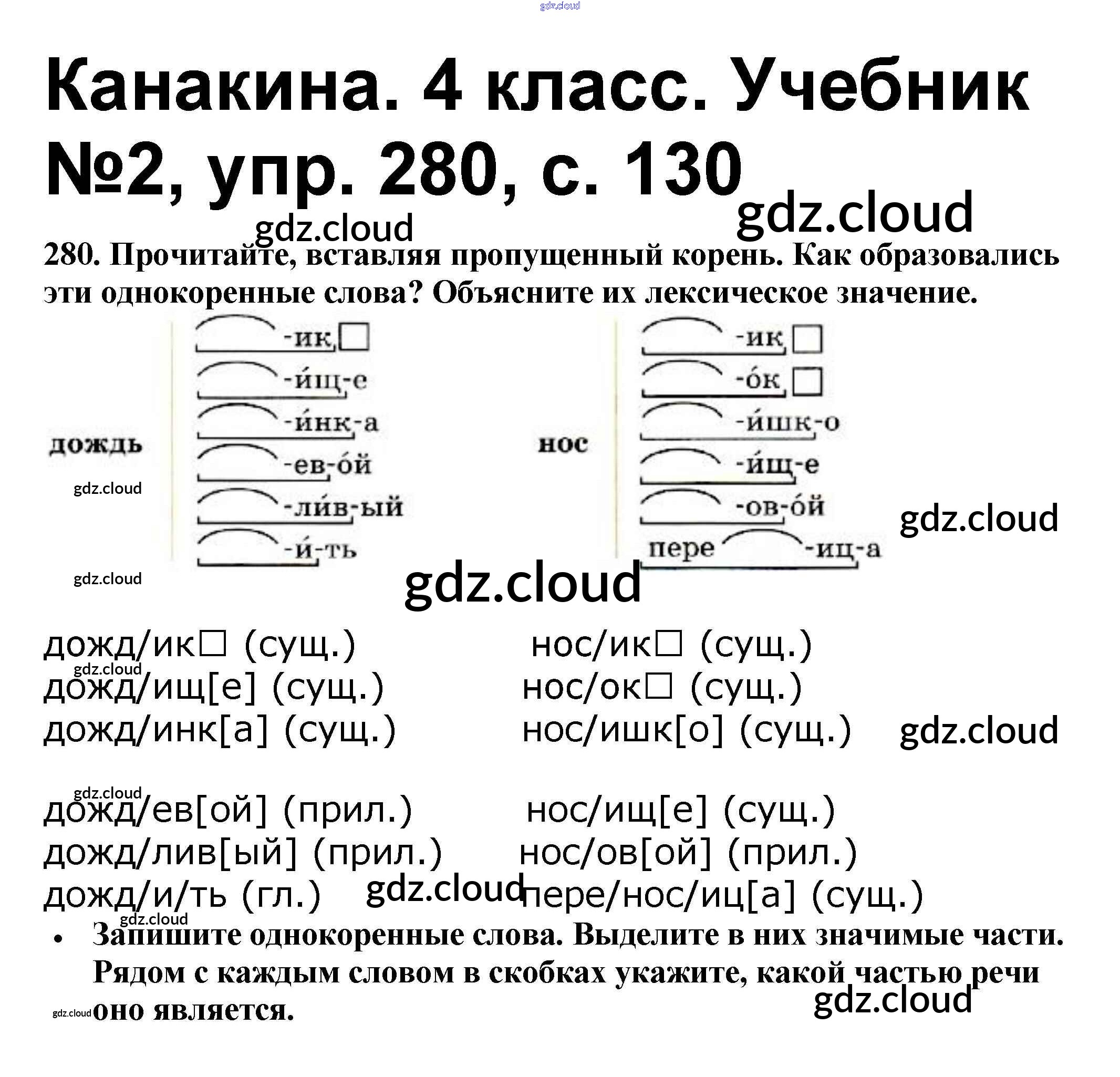 Ответ на задание 280 Учебник Русский язык за 4 (четвертый) класс Канакина, Горецкий Школа России 2015 Часть 1, 2