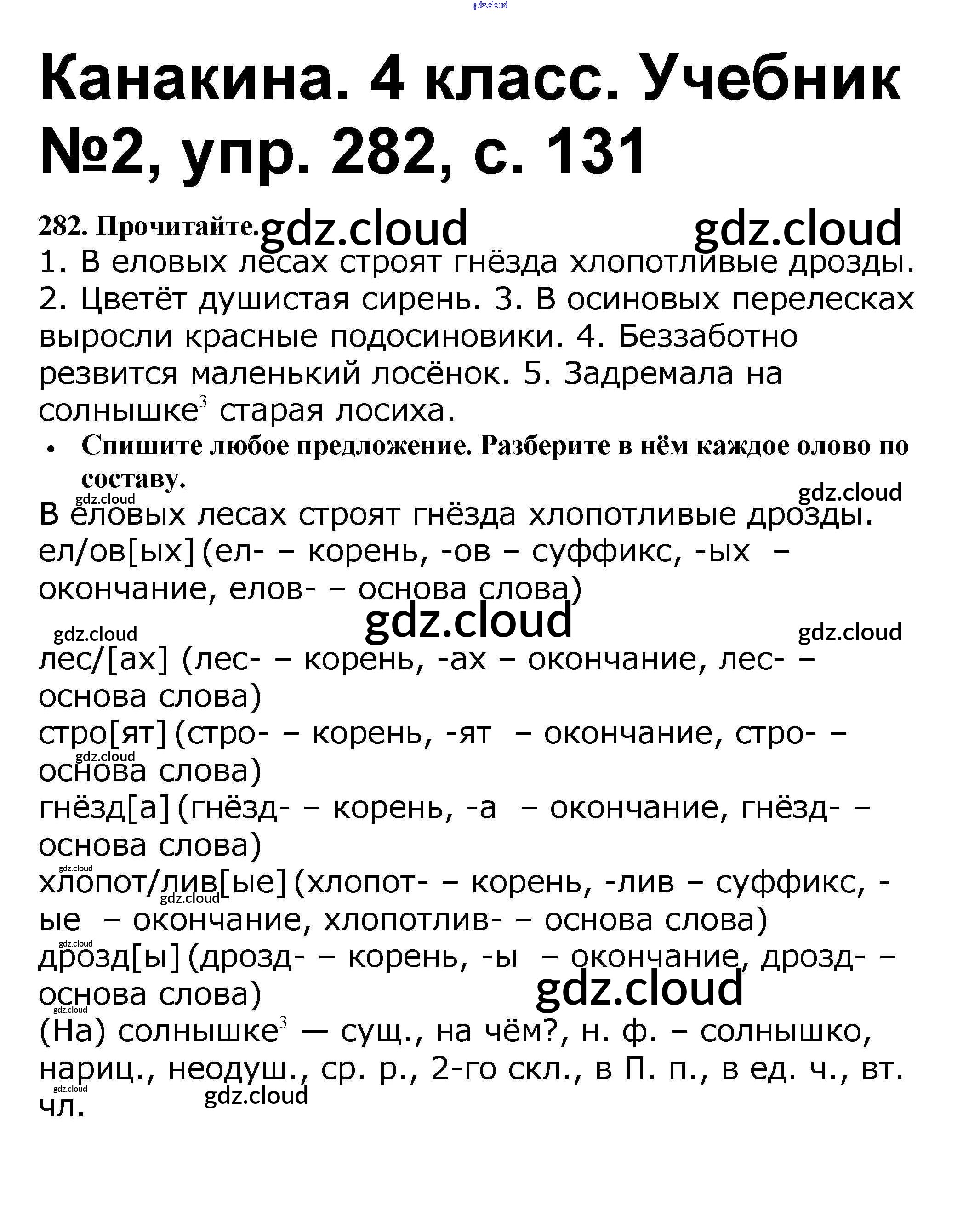Ответ на задание 282 Учебник Русский язык за 4 (четвертый) класс Канакина, Горецкий Школа России 2015 Часть 1, 2