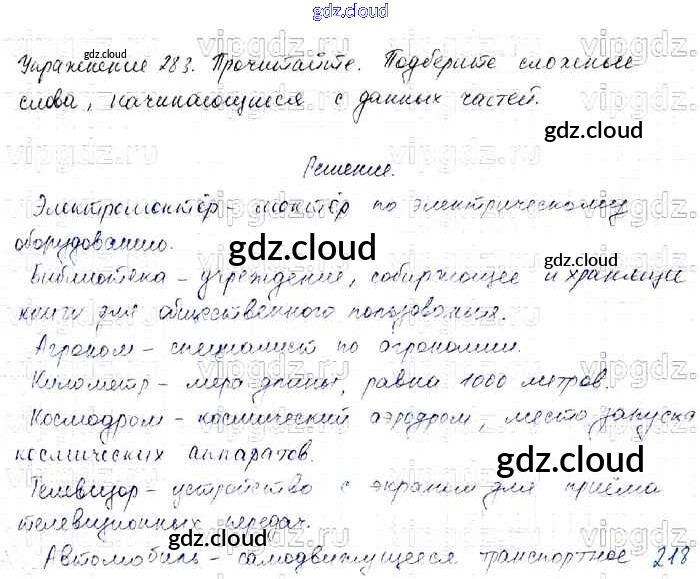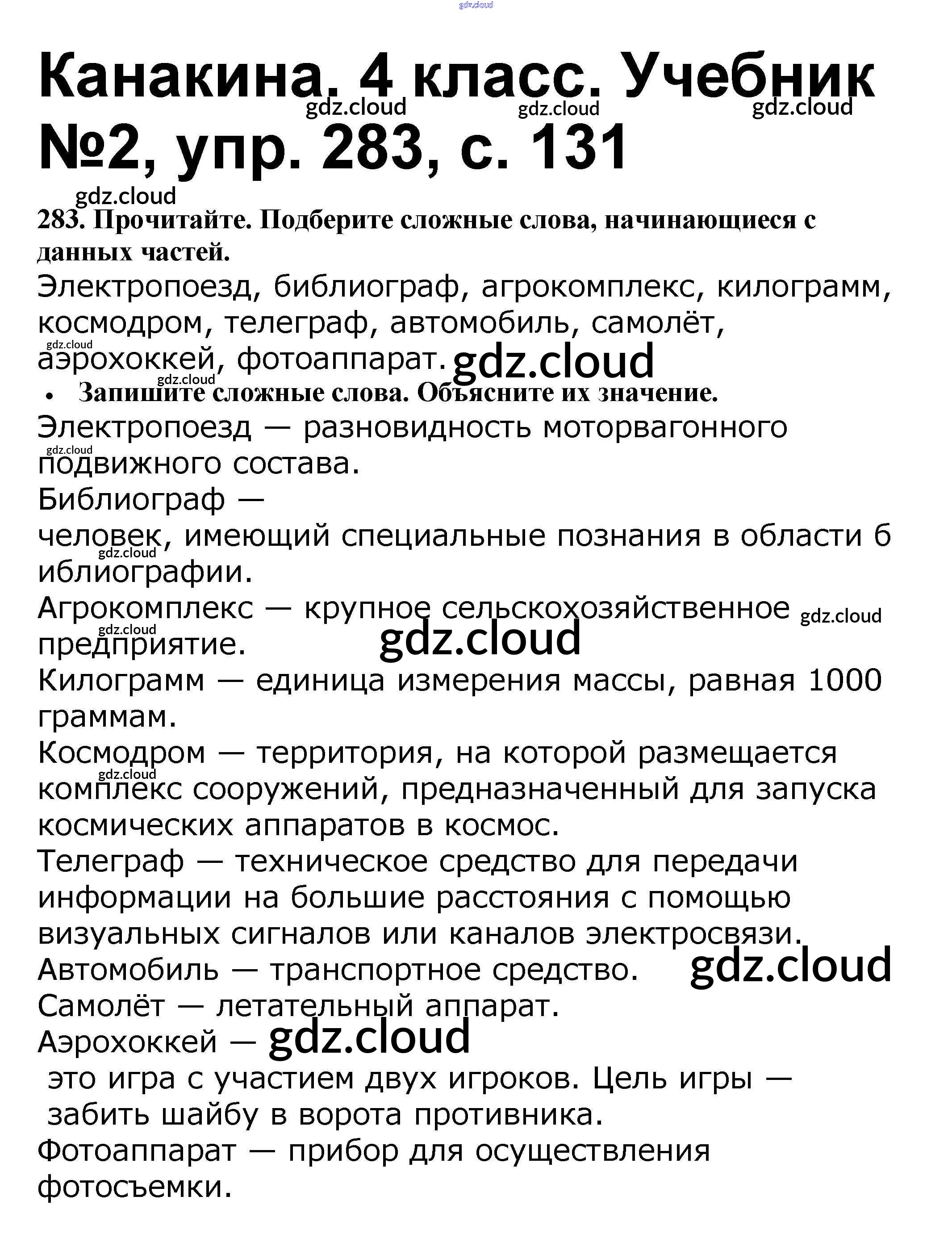 Ответ на задание 283 Учебник Русский язык за 4 (четвертый) класс Канакина, Горецкий Школа России 2015 Часть 1, 2
