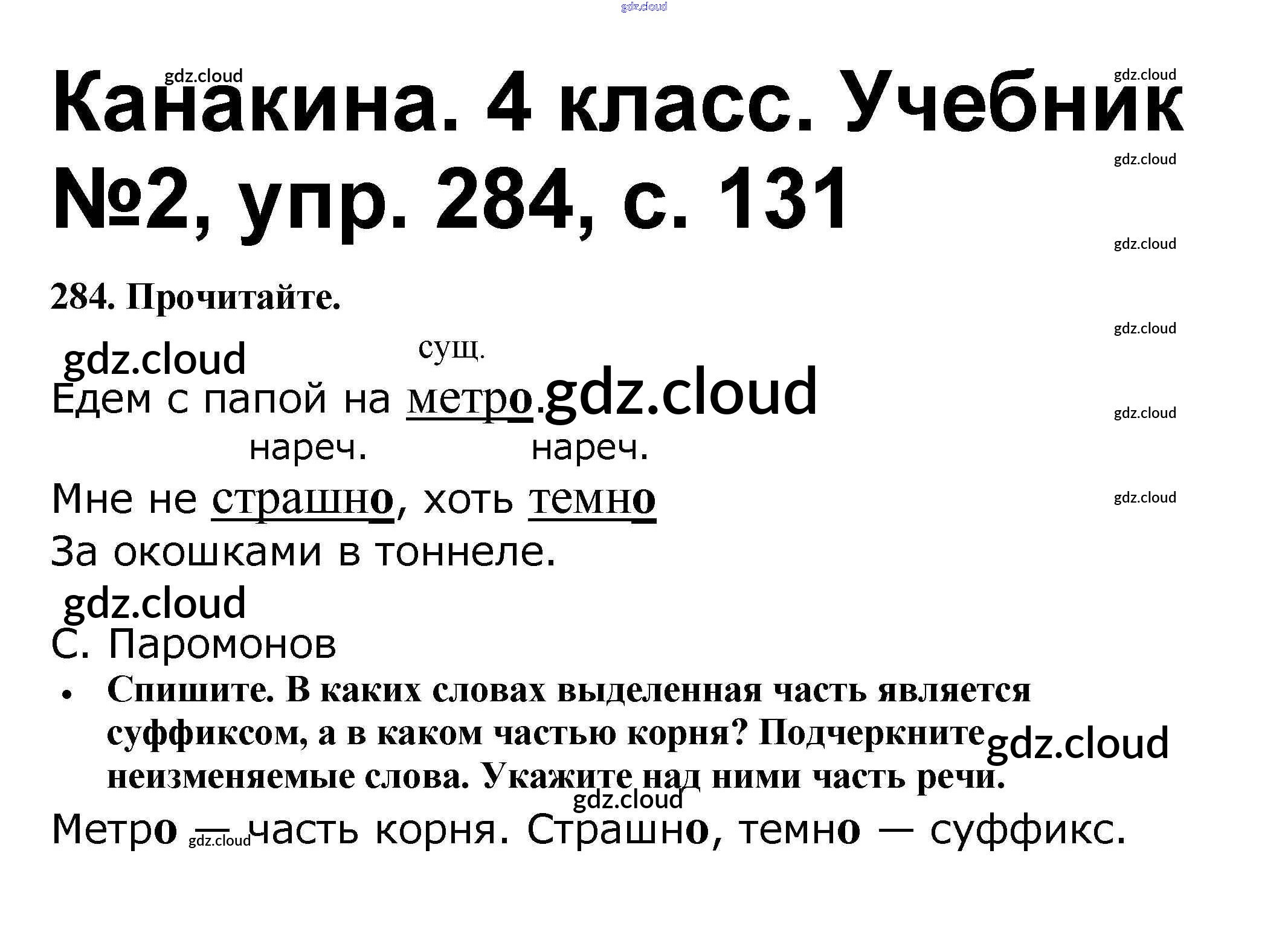 Ответ на задание 284 Учебник Русский язык за 4 (четвертый) класс Канакина, Горецкий Школа России 2015 Часть 1, 2