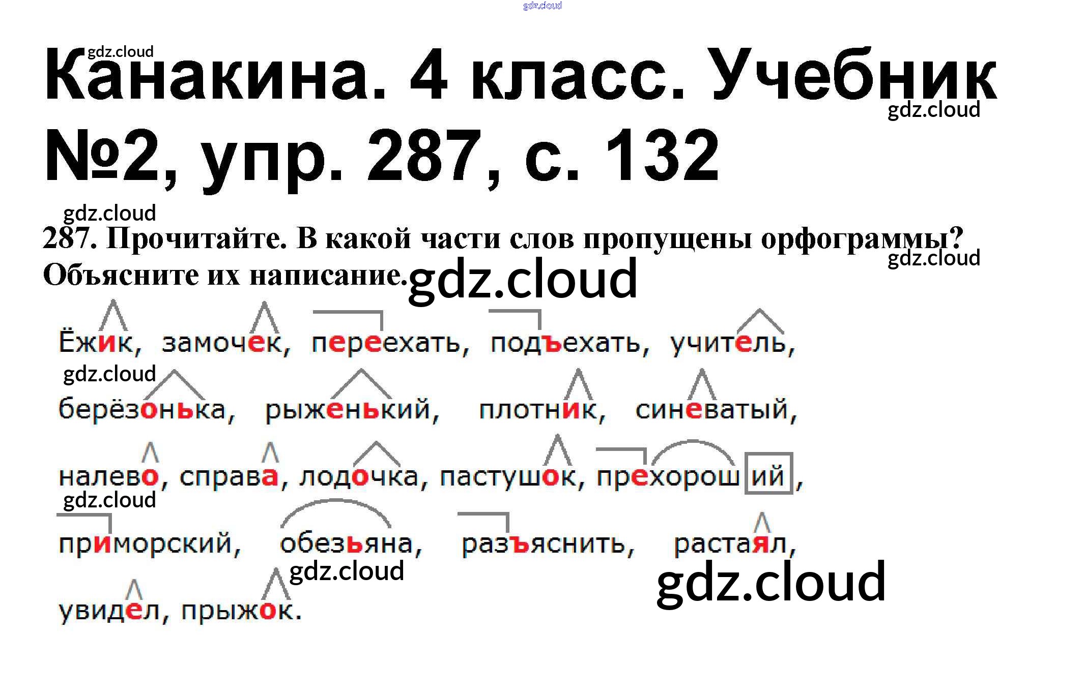 Ответ на задание 287 Учебник Русский язык за 4 (четвертый) класс Канакина, Горецкий Школа России 2015 Часть 1, 2