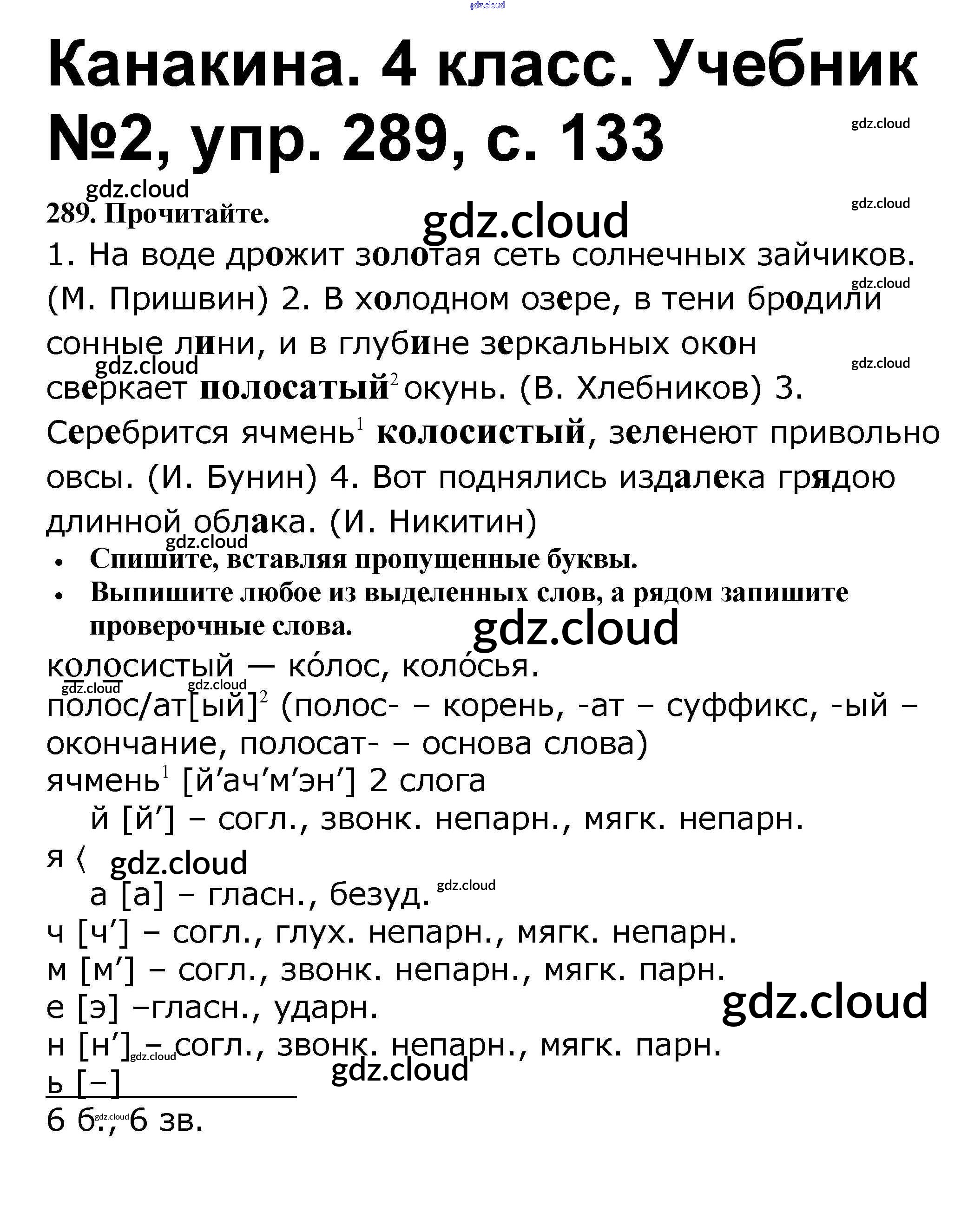 Ответ на задание 289 Учебник Русский язык за 4 (четвертый) класс Канакина, Горецкий Школа России 2015 Часть 1, 2