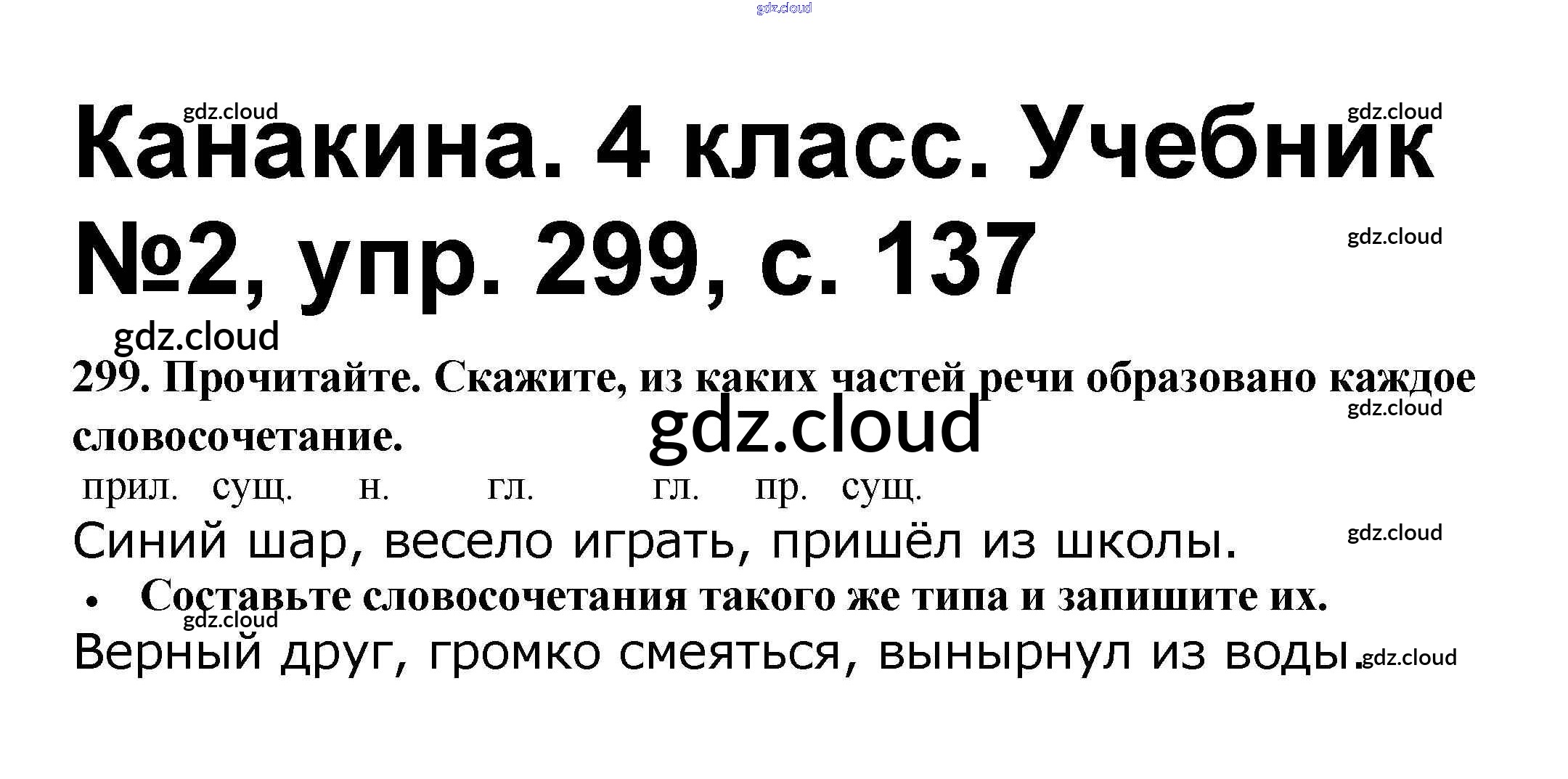 Ответ на задание 299 Учебник Русский язык за 4 (четвертый) класс Канакина, Горецкий Школа России 2015 Часть 1, 2