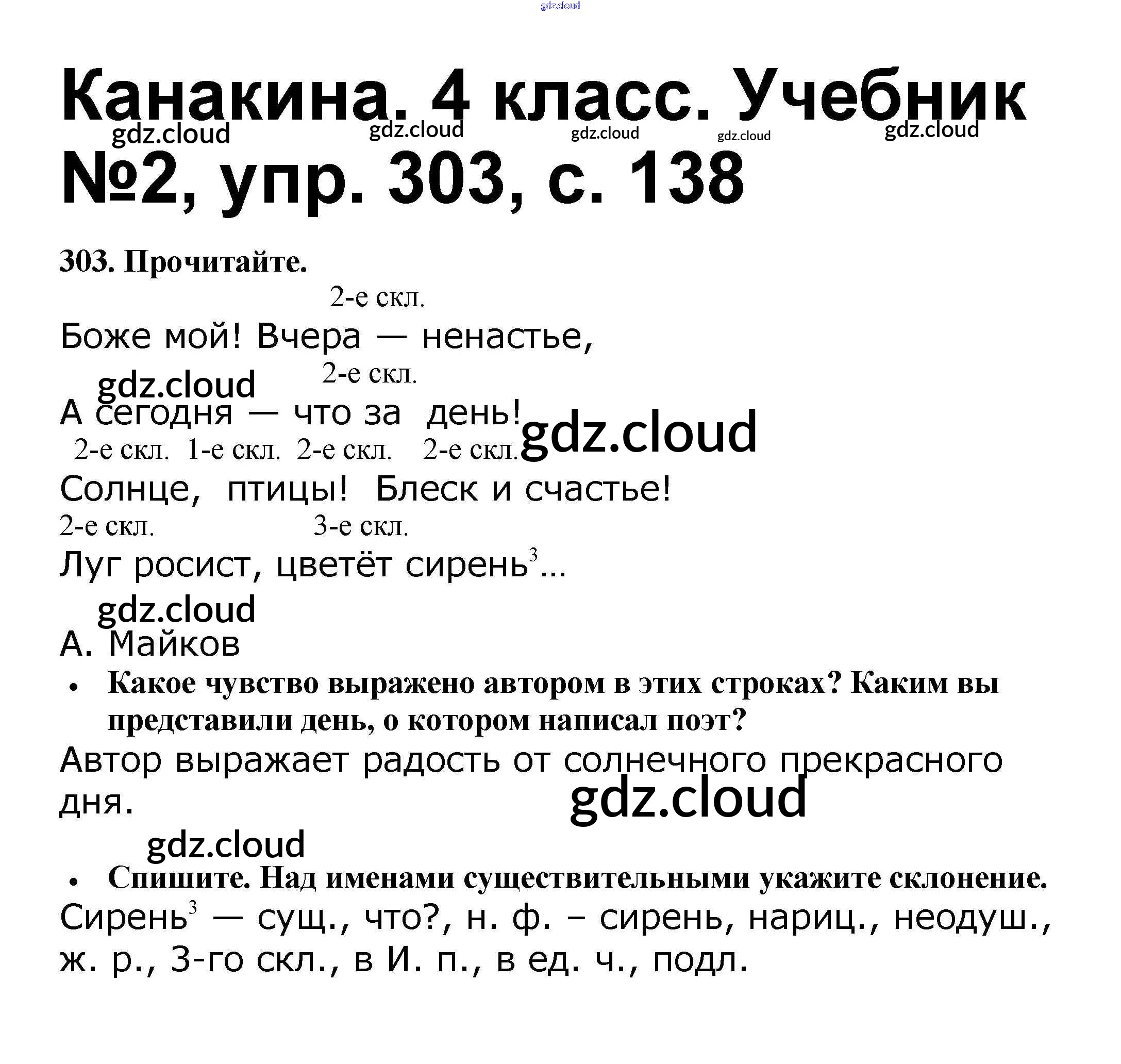 Ответ на задание 303 Учебник Русский язык за 4 (четвертый) класс Канакина, Горецкий Школа России 2015 Часть 1, 2