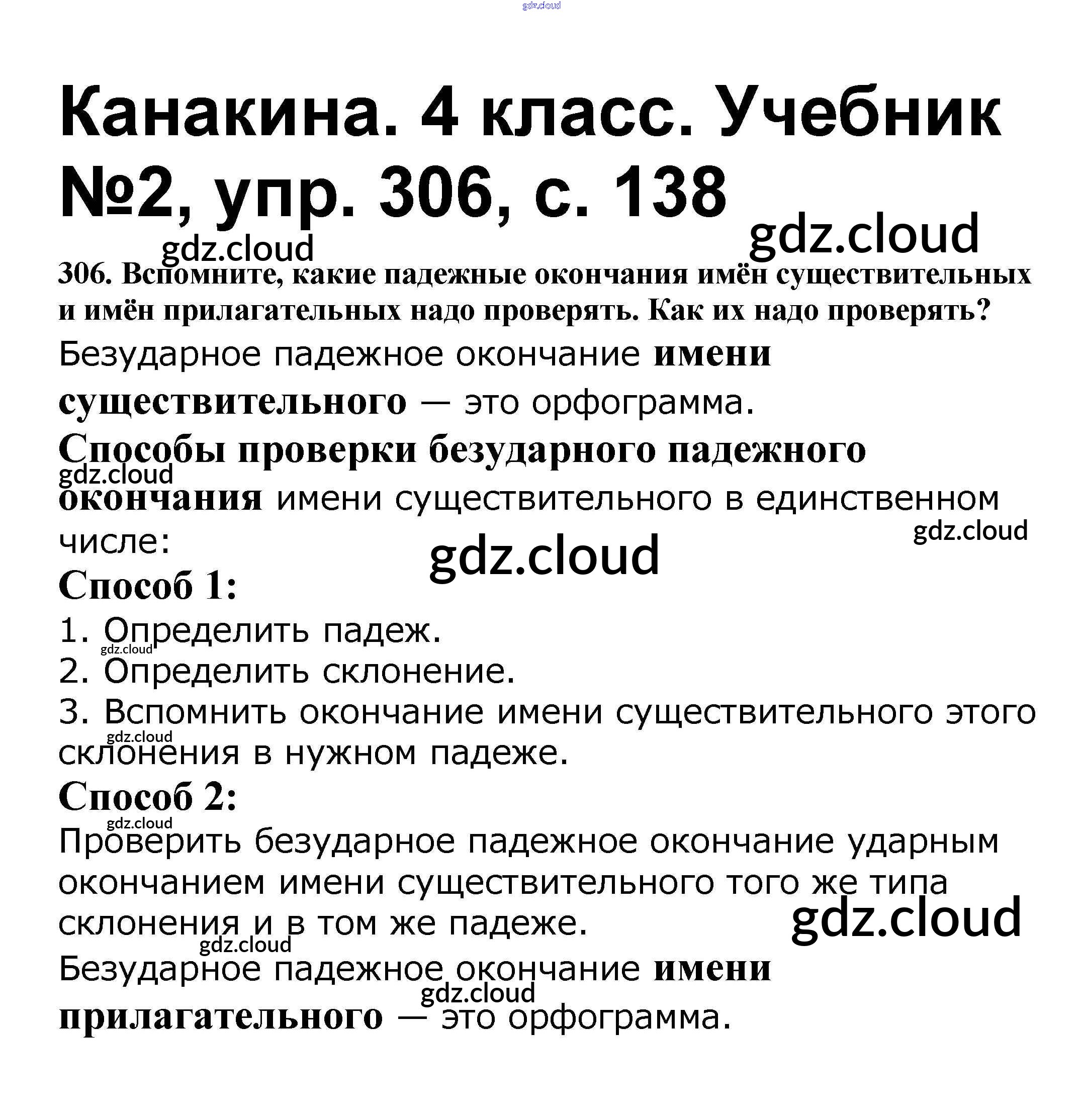 Ответ на задание 306 Учебник Русский язык за 4 (четвертый) класс Канакина, Горецкий Школа России 2015 Часть 1, 2