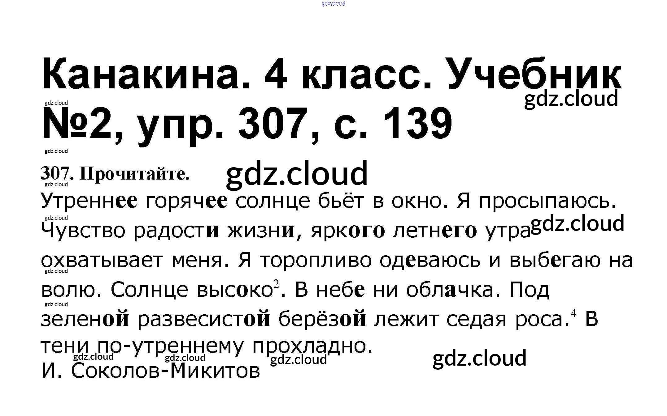 Ответ на задание 307 Учебник Русский язык за 4 (четвертый) класс Канакина, Горецкий Школа России 2015 Часть 1, 2