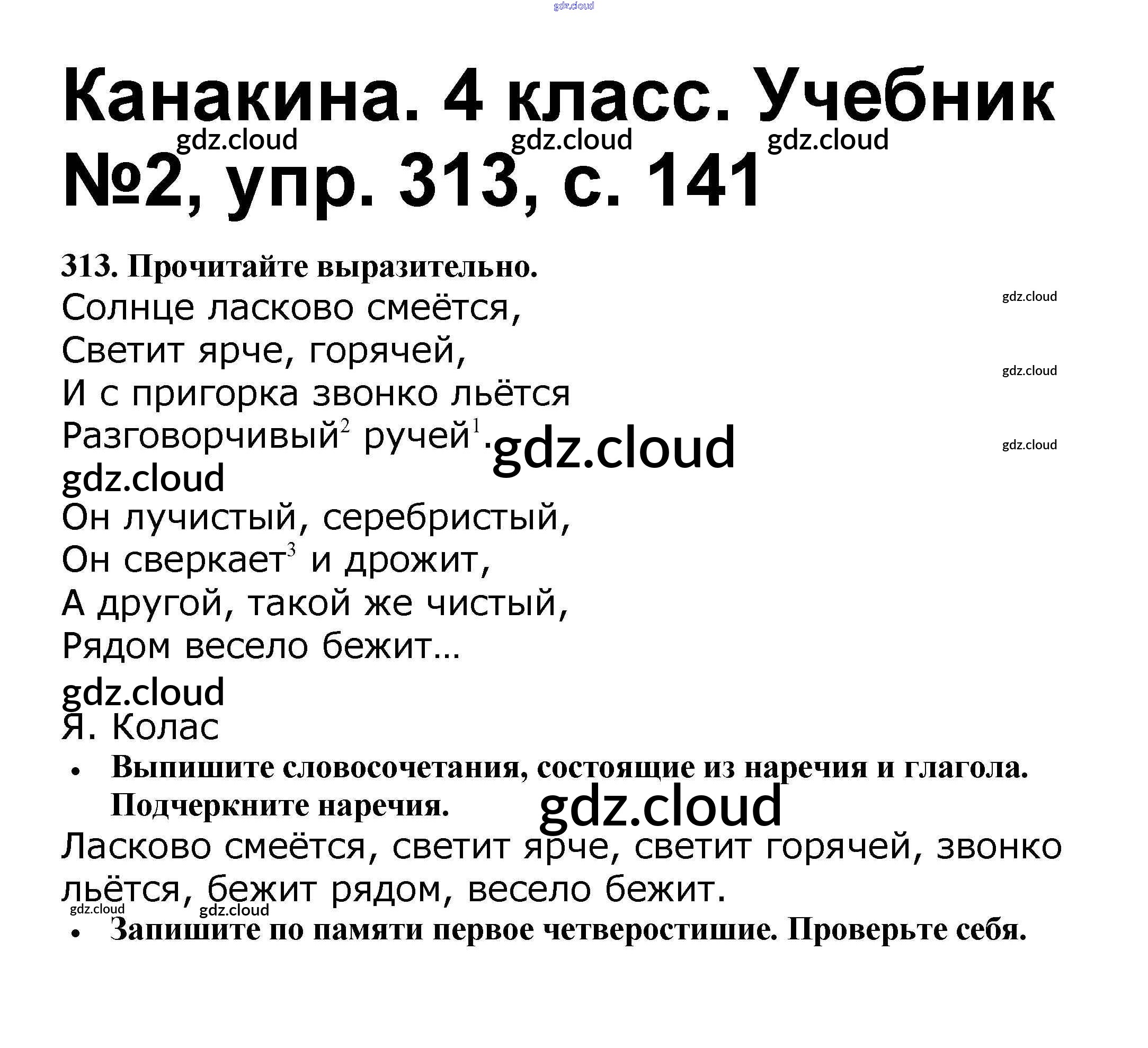 Ответ на задание 313 Учебник Русский язык за 4 (четвертый) класс Канакина, Горецкий Школа России 2015 Часть 1, 2