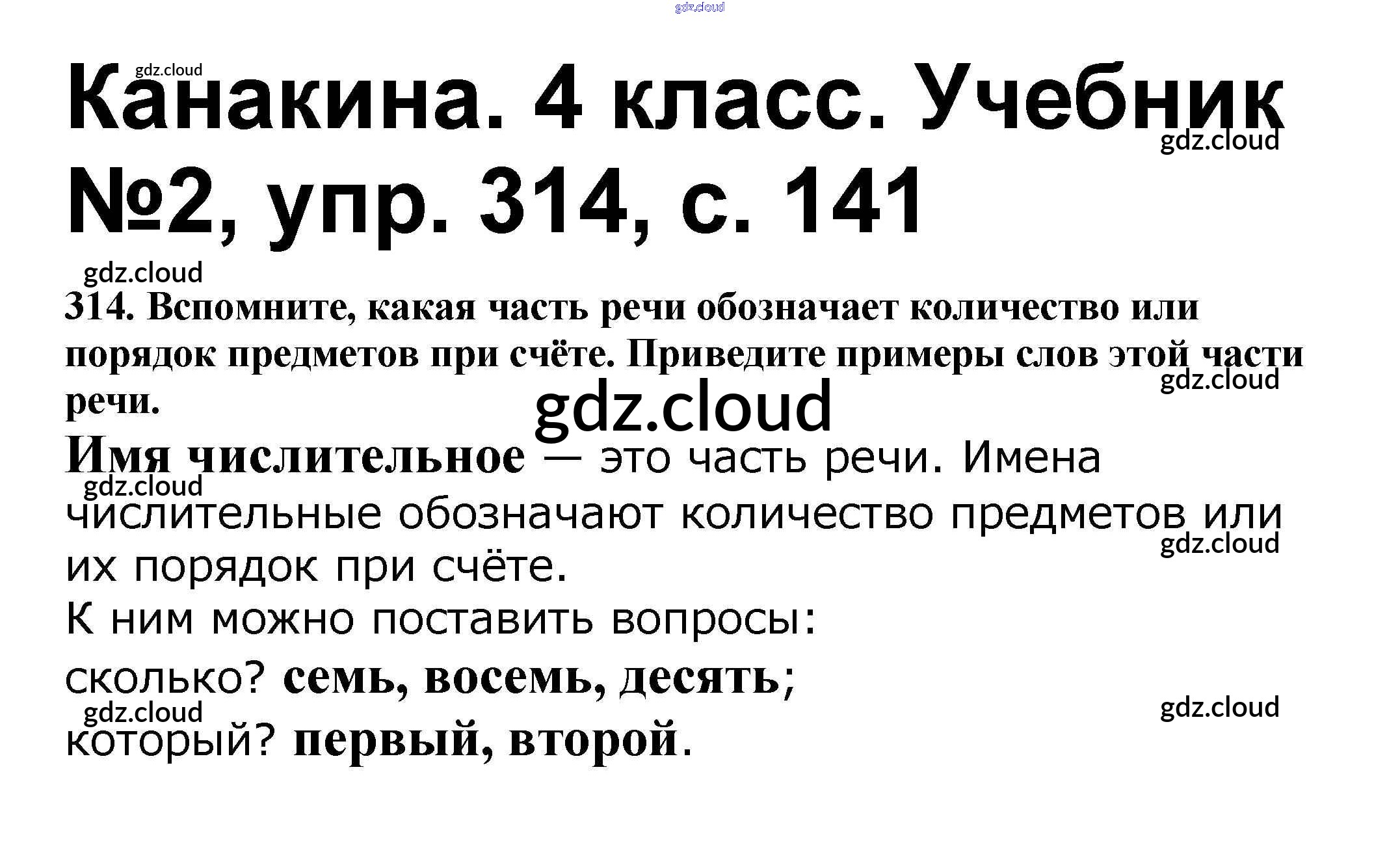 Ответ на задание 314 Учебник Русский язык за 4 (четвертый) класс Канакина, Горецкий Школа России 2015 Часть 1, 2