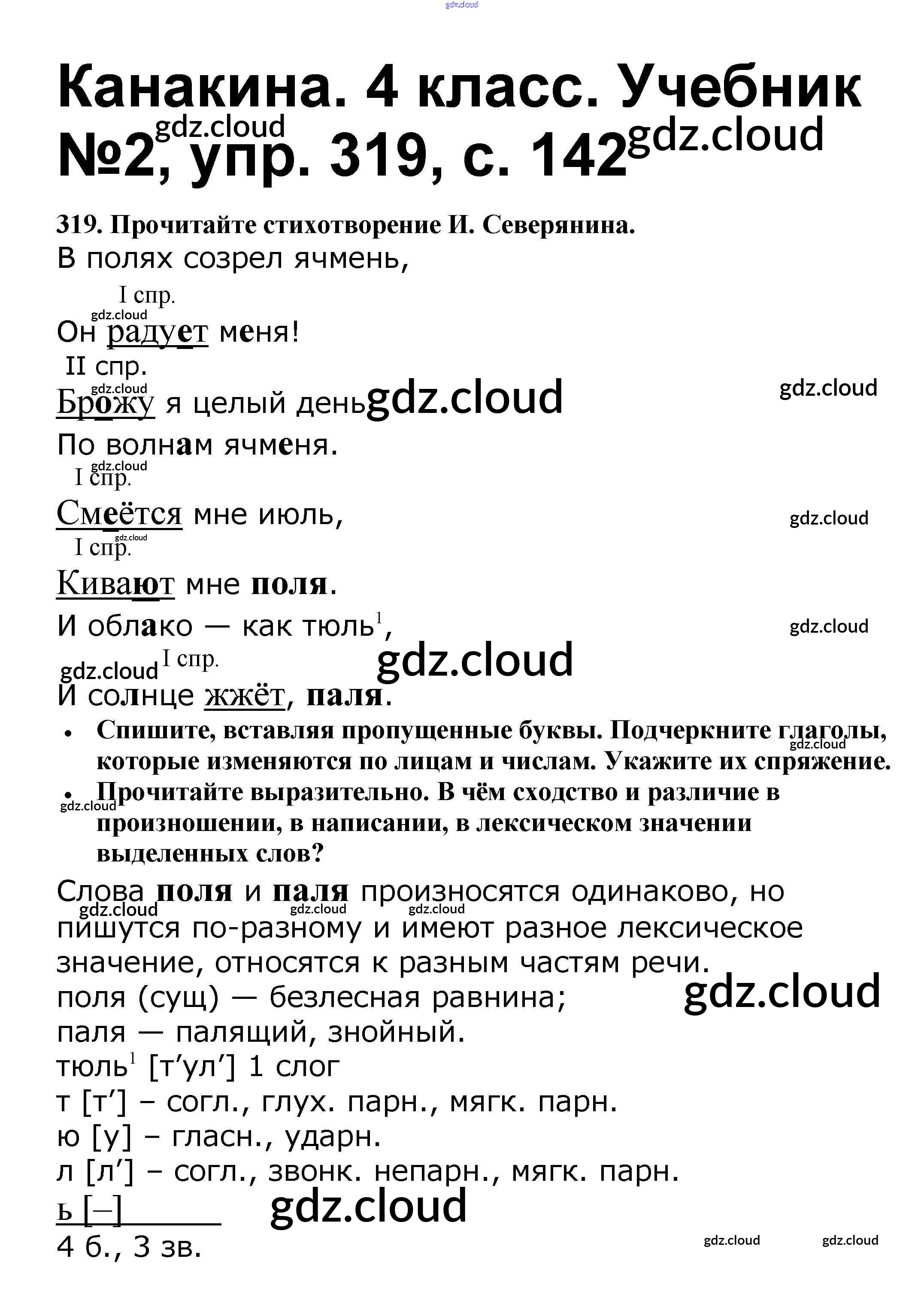 Ответ на задание 319 Учебник Русский язык за 4 (четвертый) класс Канакина, Горецкий Школа России 2015 Часть 1, 2