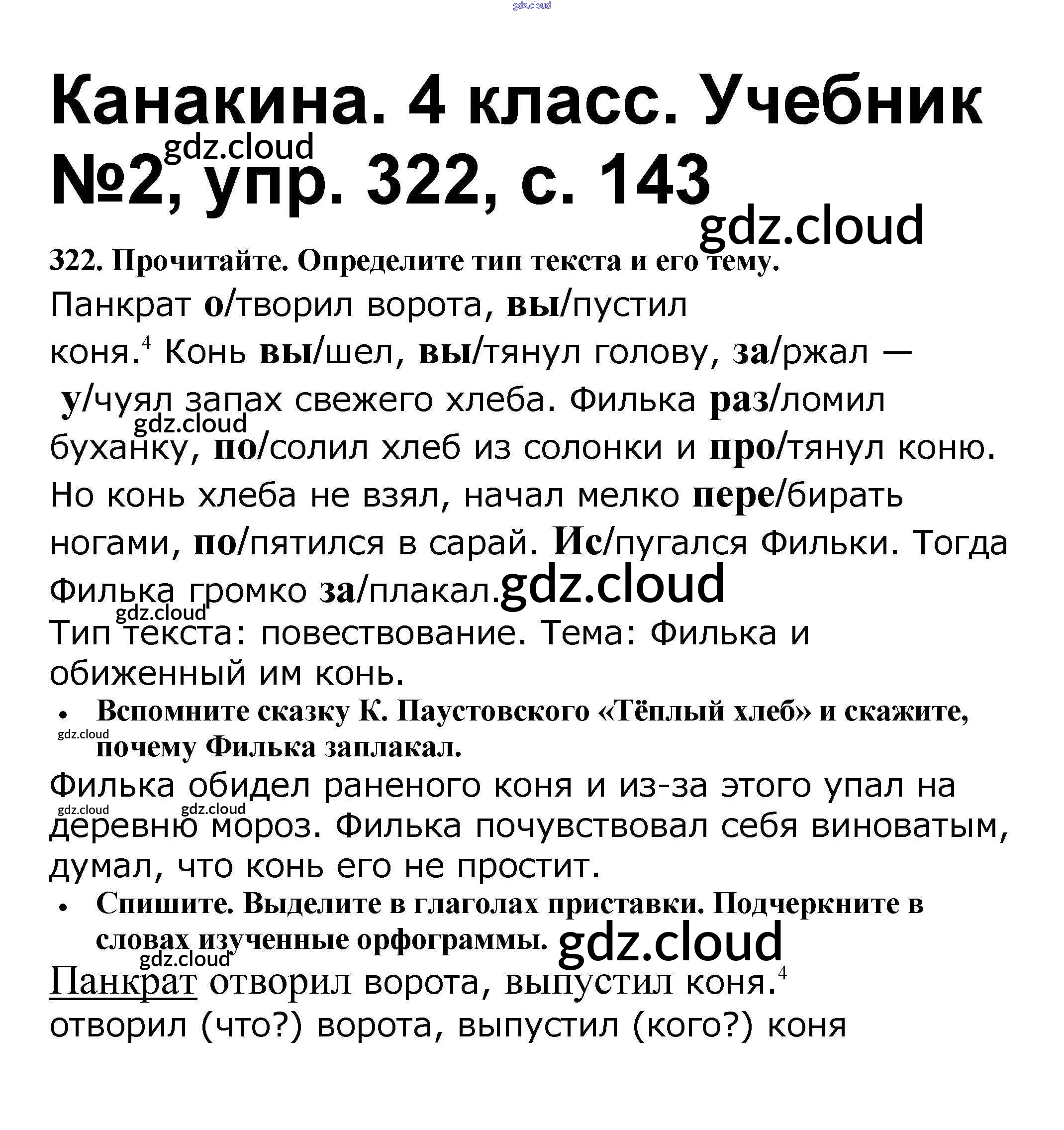 Ответ на задание 322 Учебник Русский язык за 4 (четвертый) класс Канакина, Горецкий Школа России 2015 Часть 1, 2