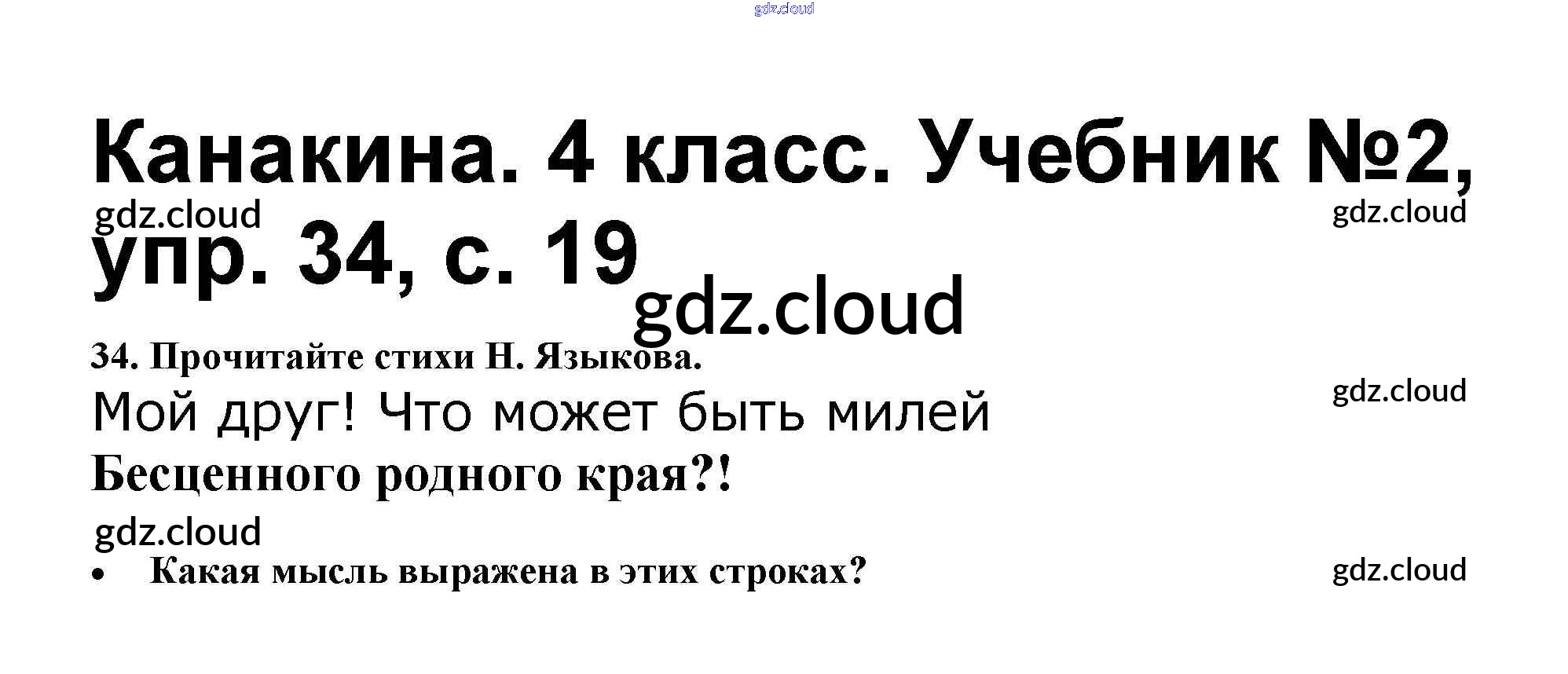 Ответ на задание 34 Учебник Русский язык за 4 (четвертый) класс Канакина, Горецкий Школа России 2015 Часть 1, 2