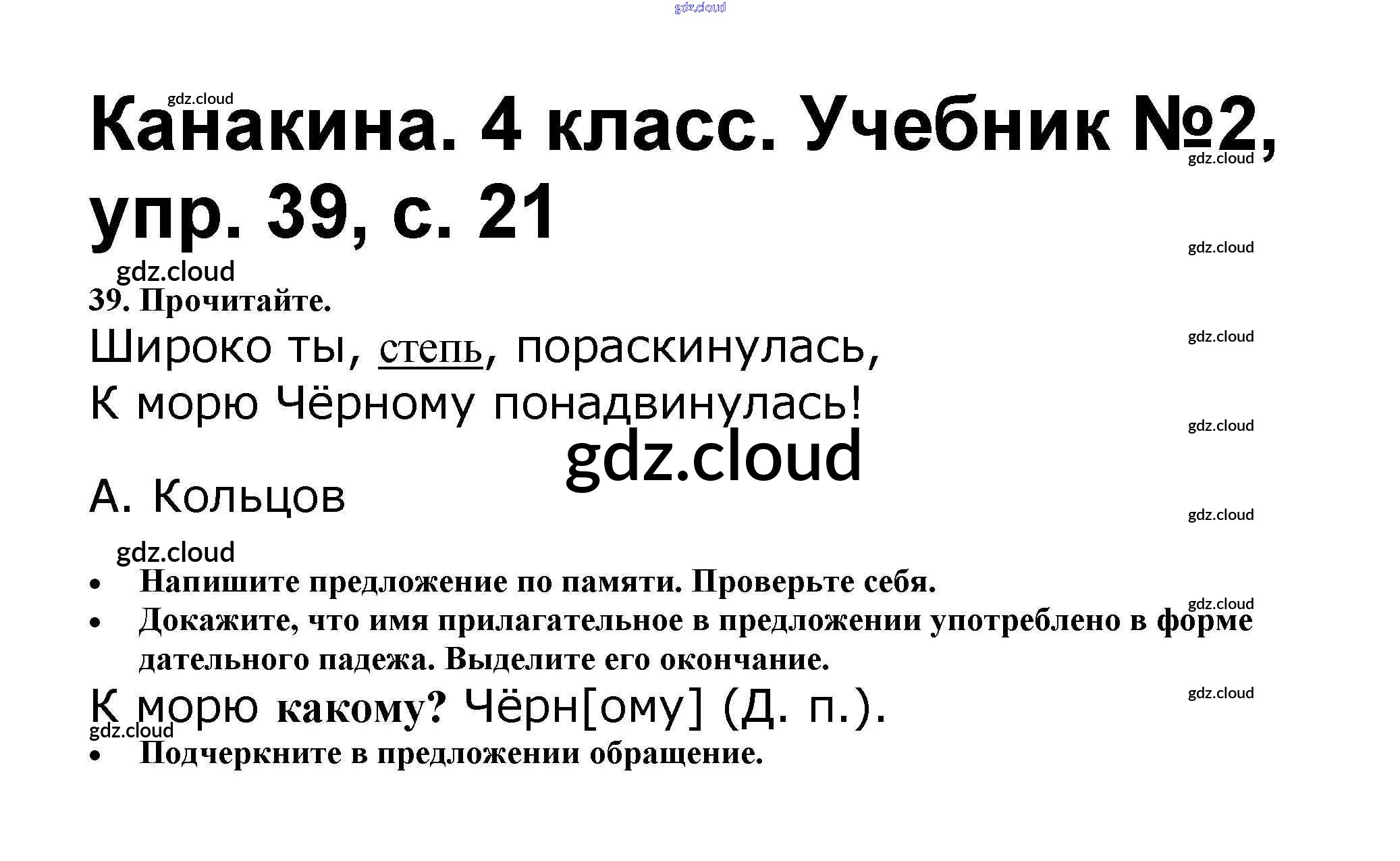 Ответ на задание 39 Учебник Русский язык за 4 (четвертый) класс Канакина, Горецкий Школа России 2015 Часть 1, 2