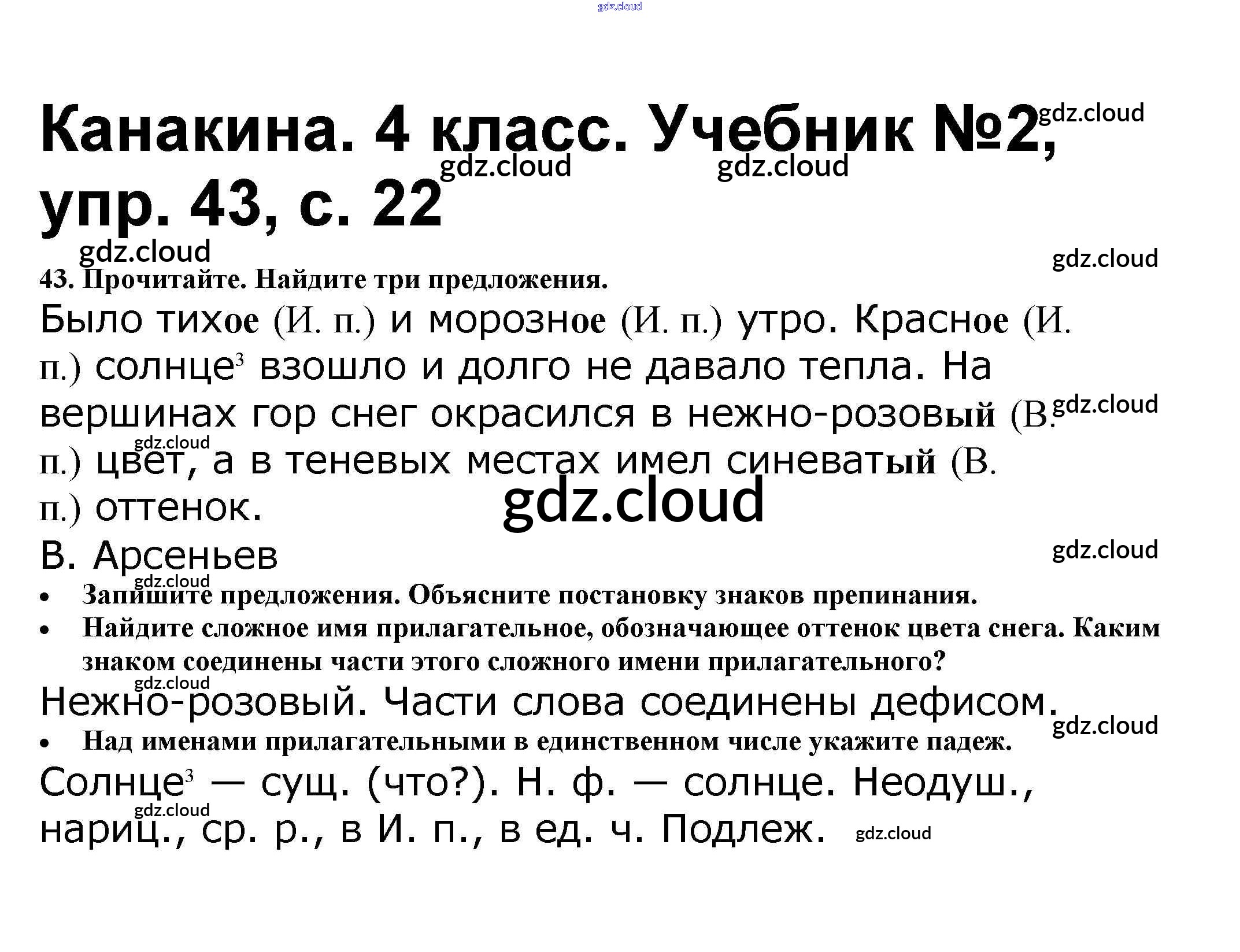 Ответ на задание 43 Учебник Русский язык за 4 (четвертый) класс Канакина, Горецкий Школа России 2015 Часть 1, 2