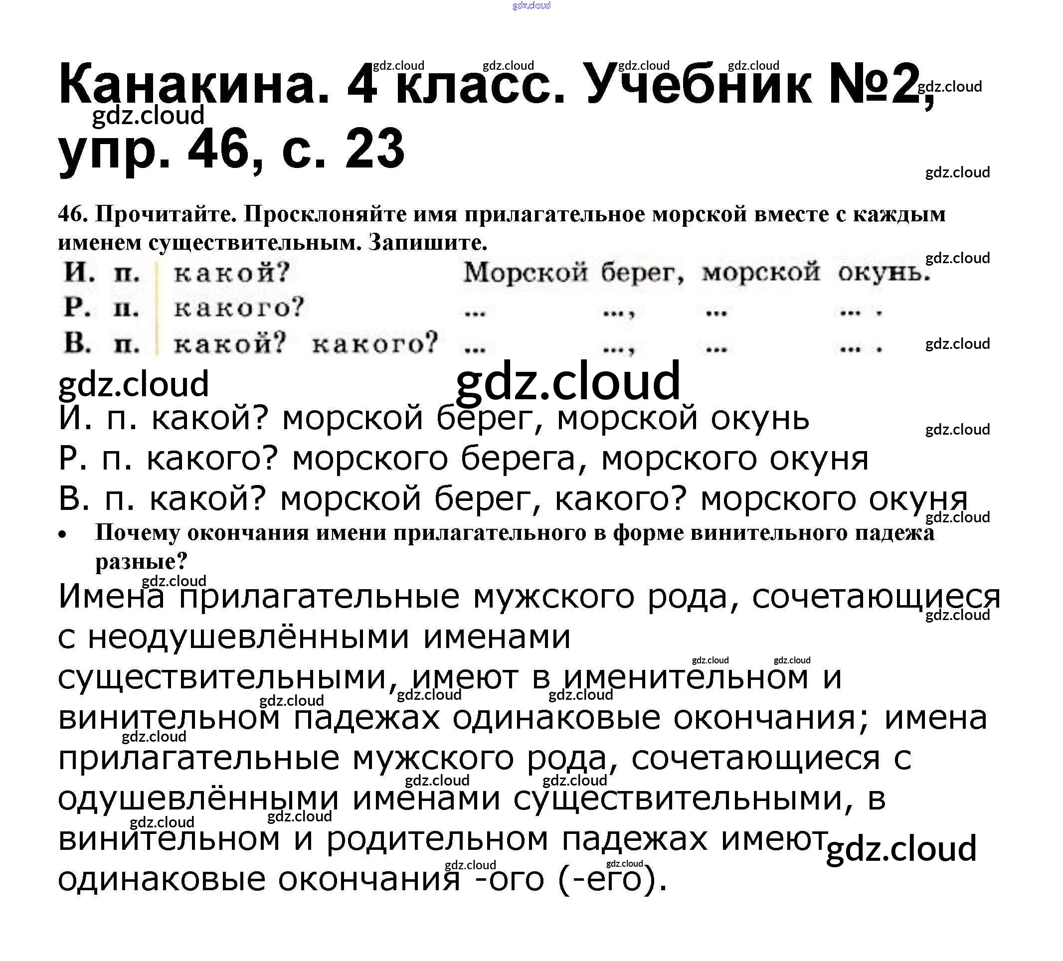 Ответ на задание 46 Учебник Русский язык за 4 (четвертый) класс Канакина, Горецкий Школа России 2015 Часть 1, 2
