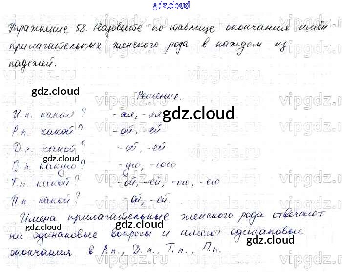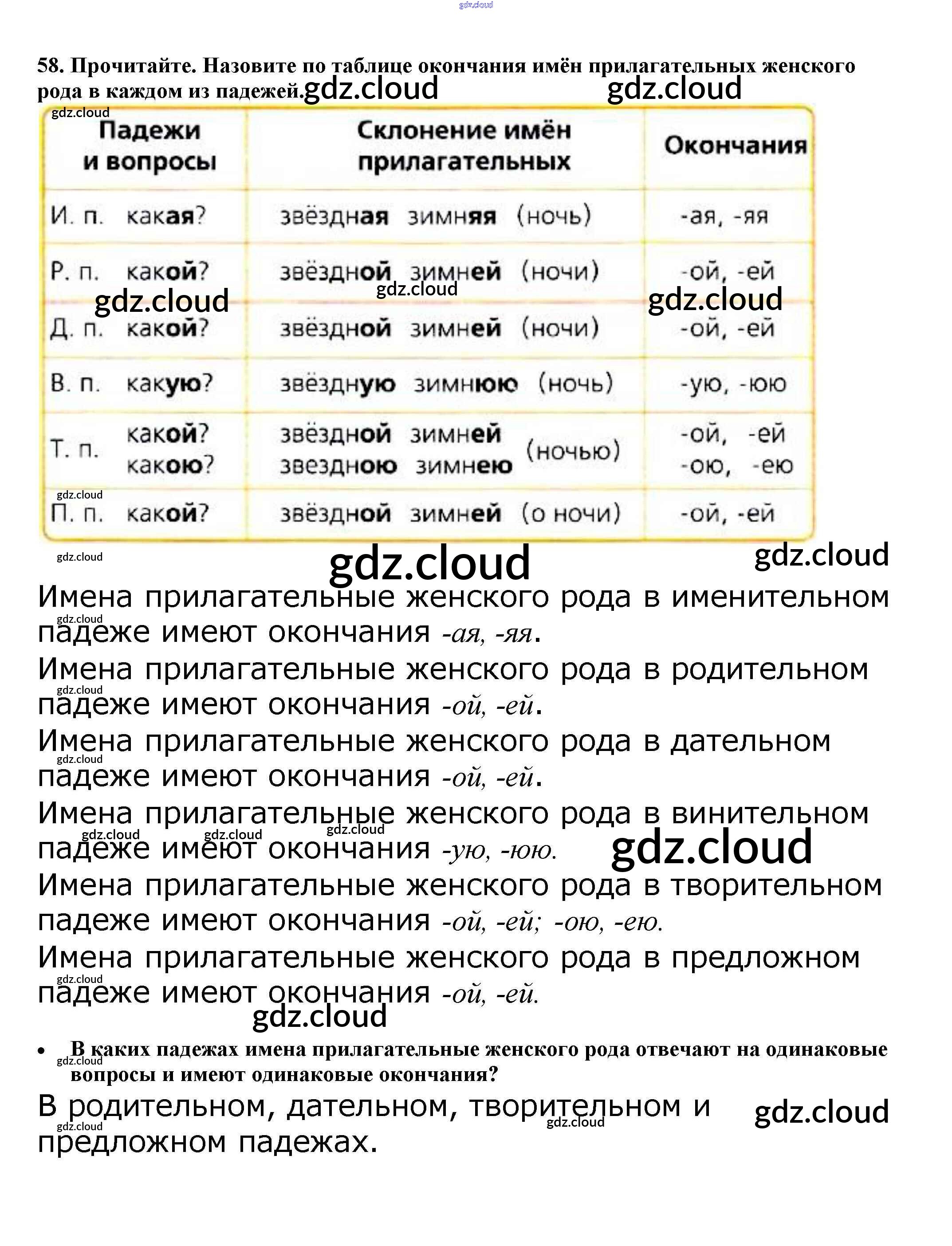 Ответ на задание 58 Учебник Русский язык за 4 (четвертый) класс Канакина, Горецкий Школа России 2015 Часть 1, 2