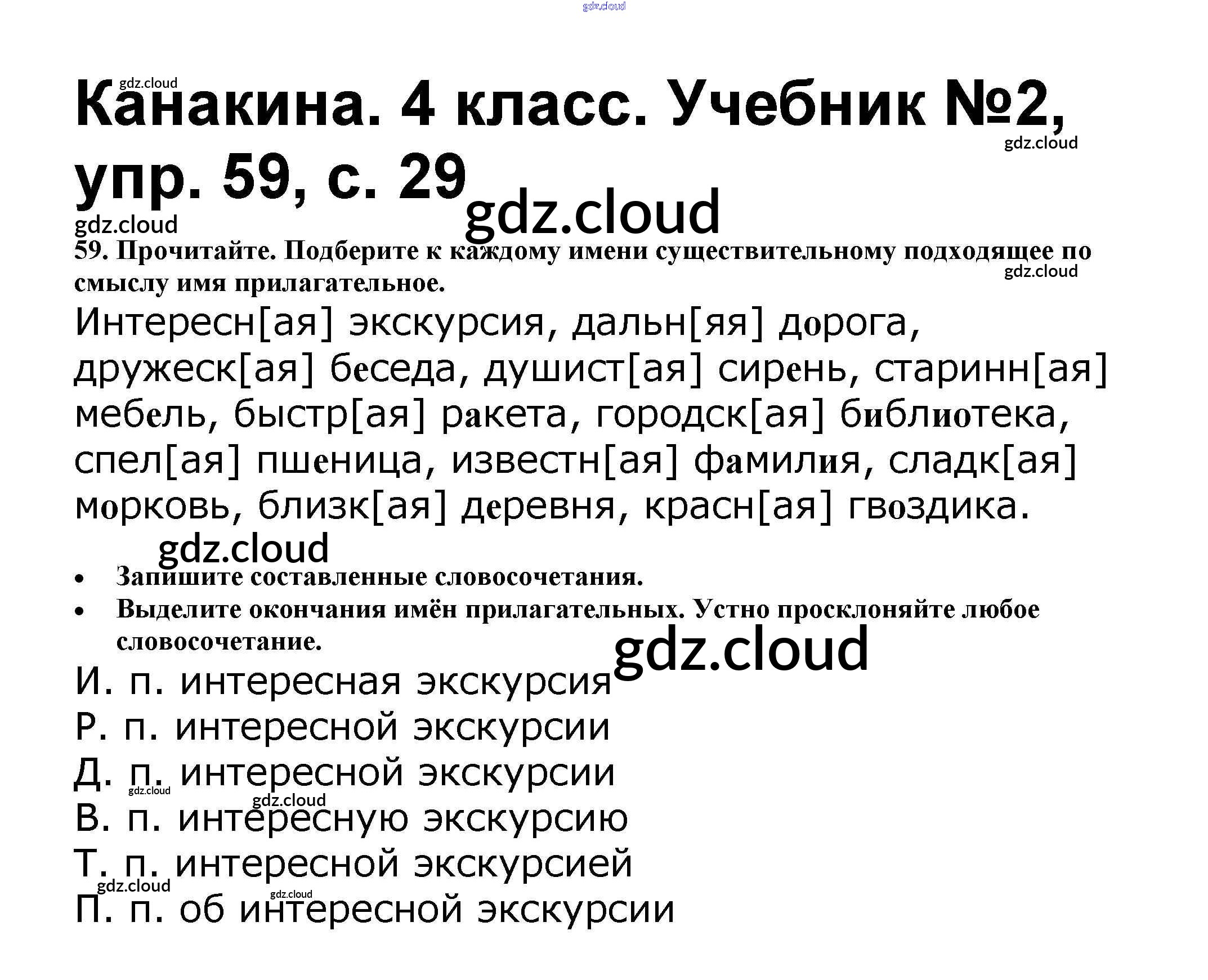 Ответ на задание 59 Учебник Русский язык за 4 (четвертый) класс Канакина, Горецкий Школа России 2015 Часть 1, 2