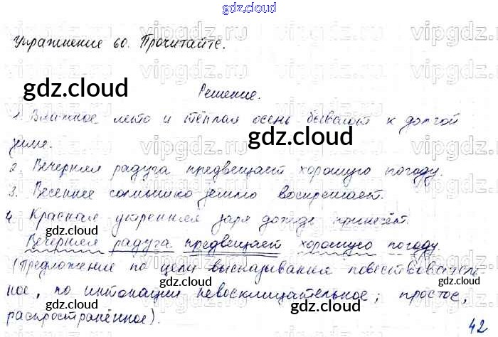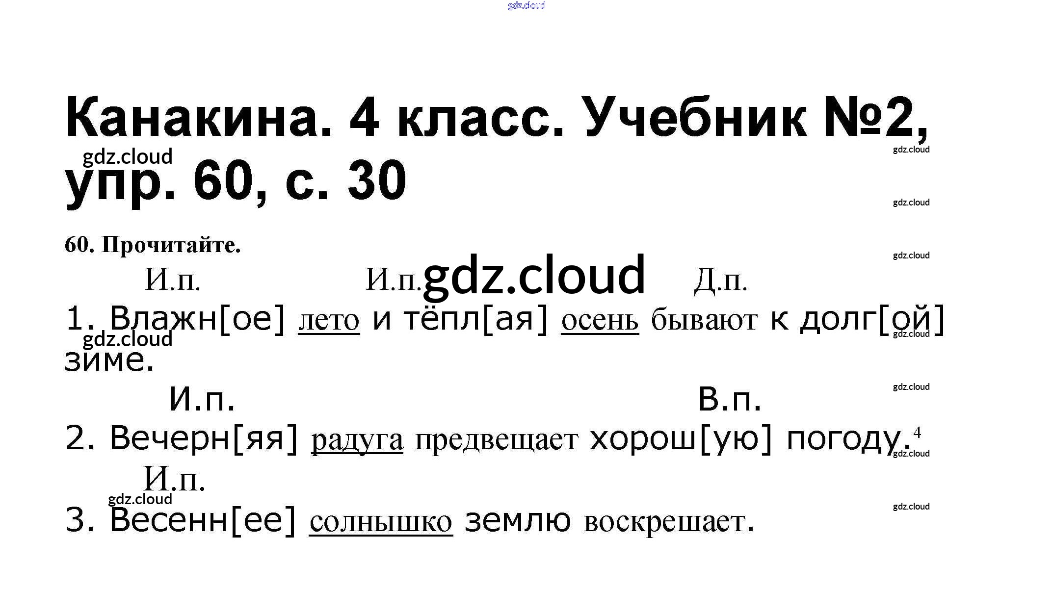 Ответ на задание 60 Учебник Русский язык за 4 (четвертый) класс Канакина, Горецкий Школа России 2015 Часть 1, 2