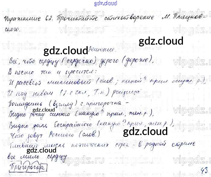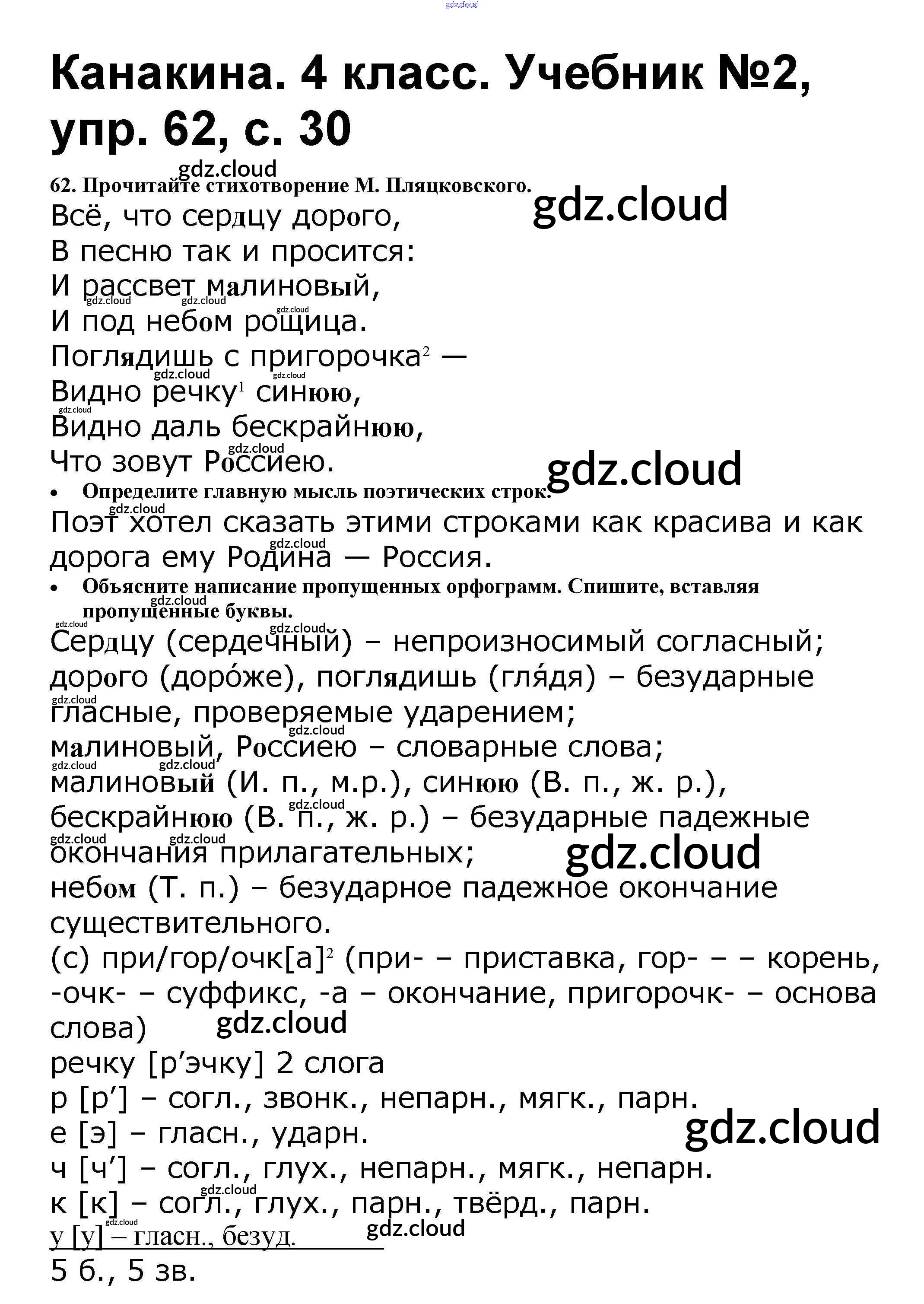Ответ на задание 62 Учебник Русский язык за 4 (четвертый) класс Канакина, Горецкий Школа России 2015 Часть 1, 2