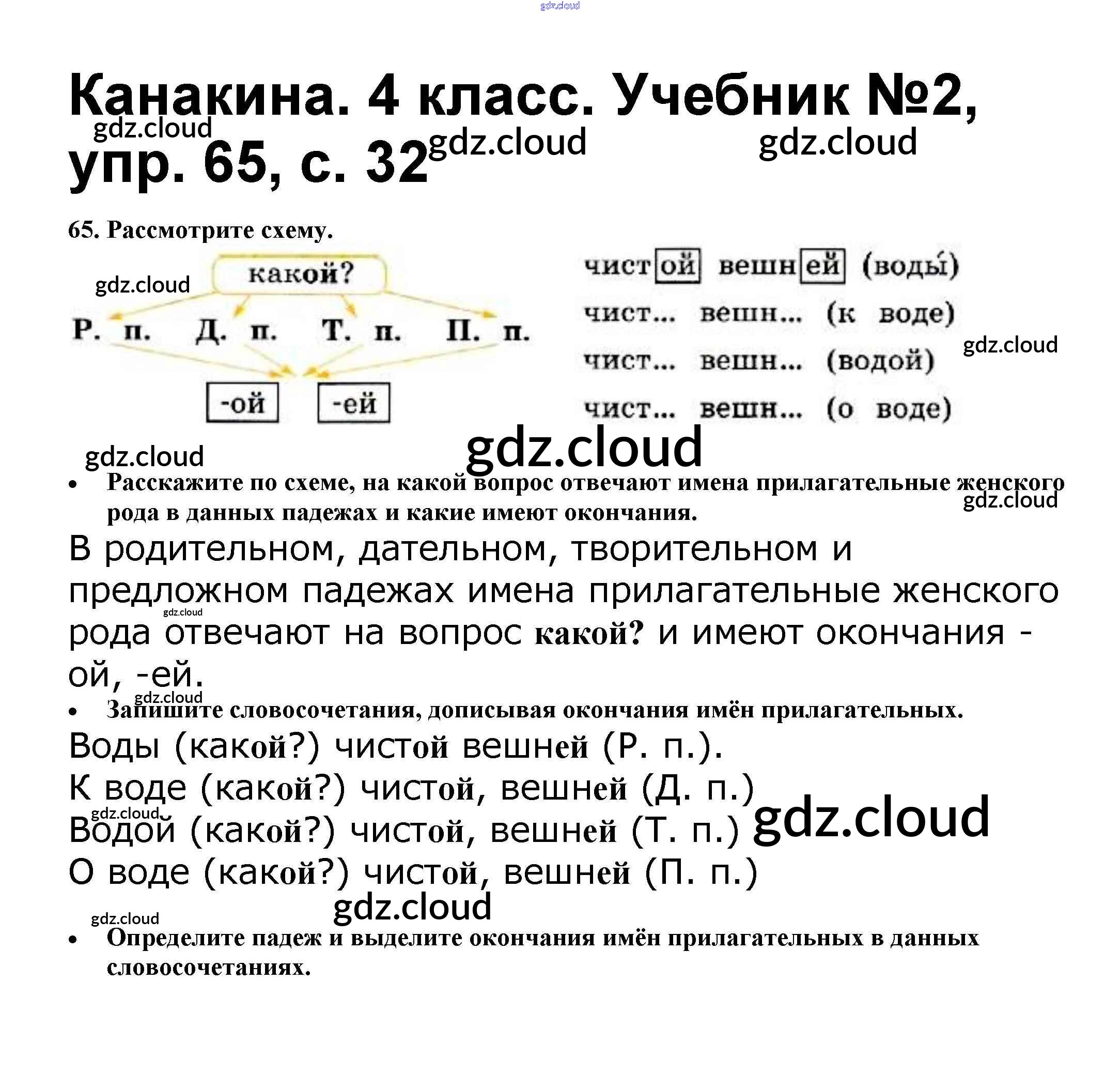 Ответ на задание 65 Учебник Русский язык за 4 (четвертый) класс Канакина, Горецкий Школа России 2015 Часть 1, 2