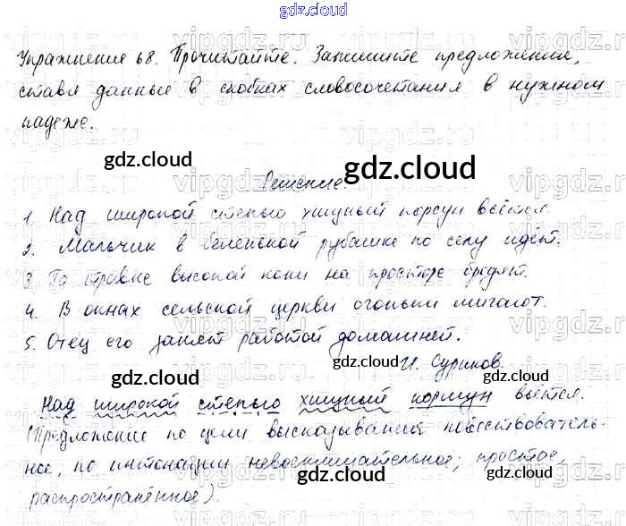 Ответ на задание 68 Учебник Русский язык за 4 (четвертый) класс Канакина, Горецкий Школа России 2015 Часть 1, 2