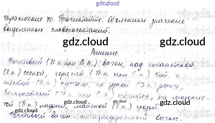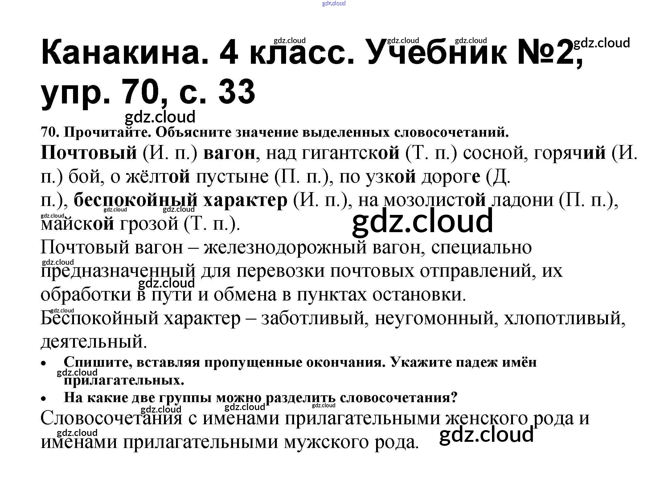 Ответ на задание 70 Учебник Русский язык за 4 (четвертый) класс Канакина, Горецкий Школа России 2015 Часть 1, 2