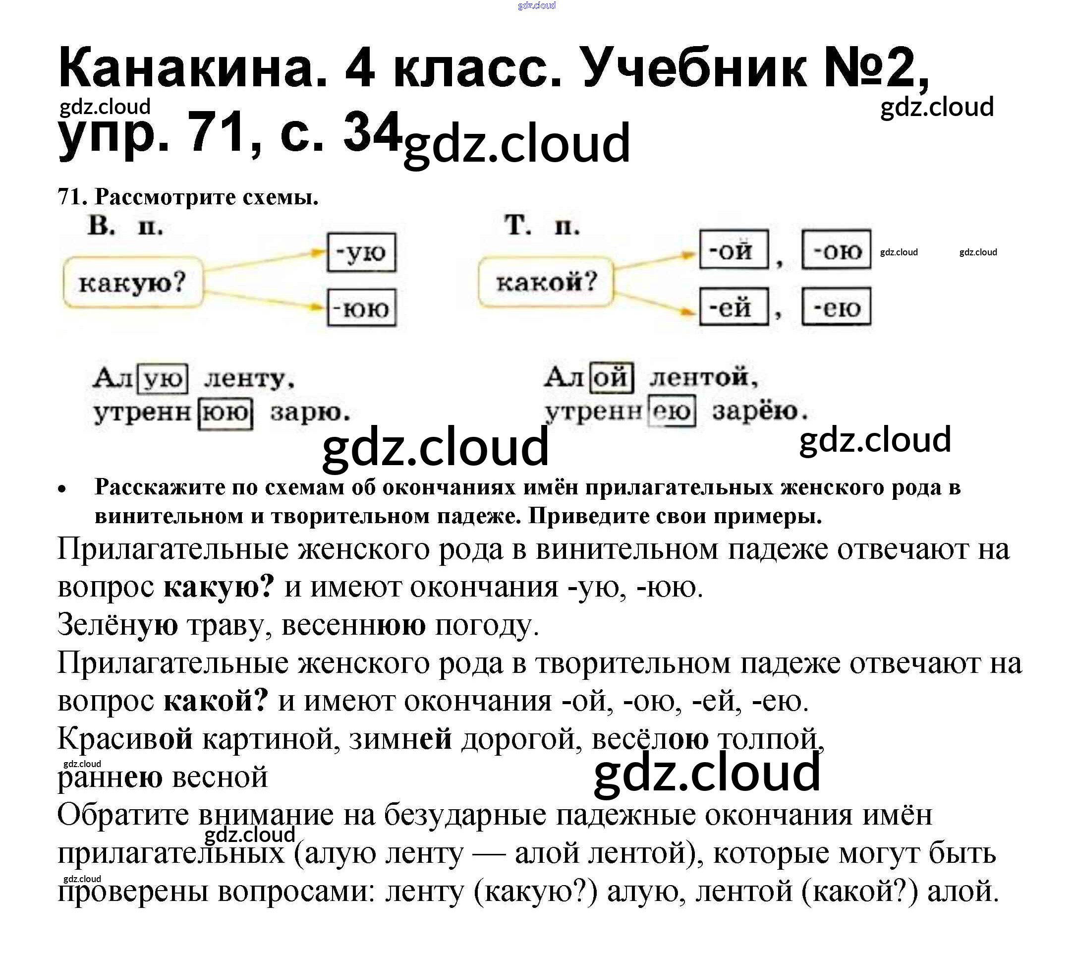 Ответ на задание 71 Учебник Русский язык за 4 (четвертый) класс Канакина, Горецкий Школа России 2015 Часть 1, 2