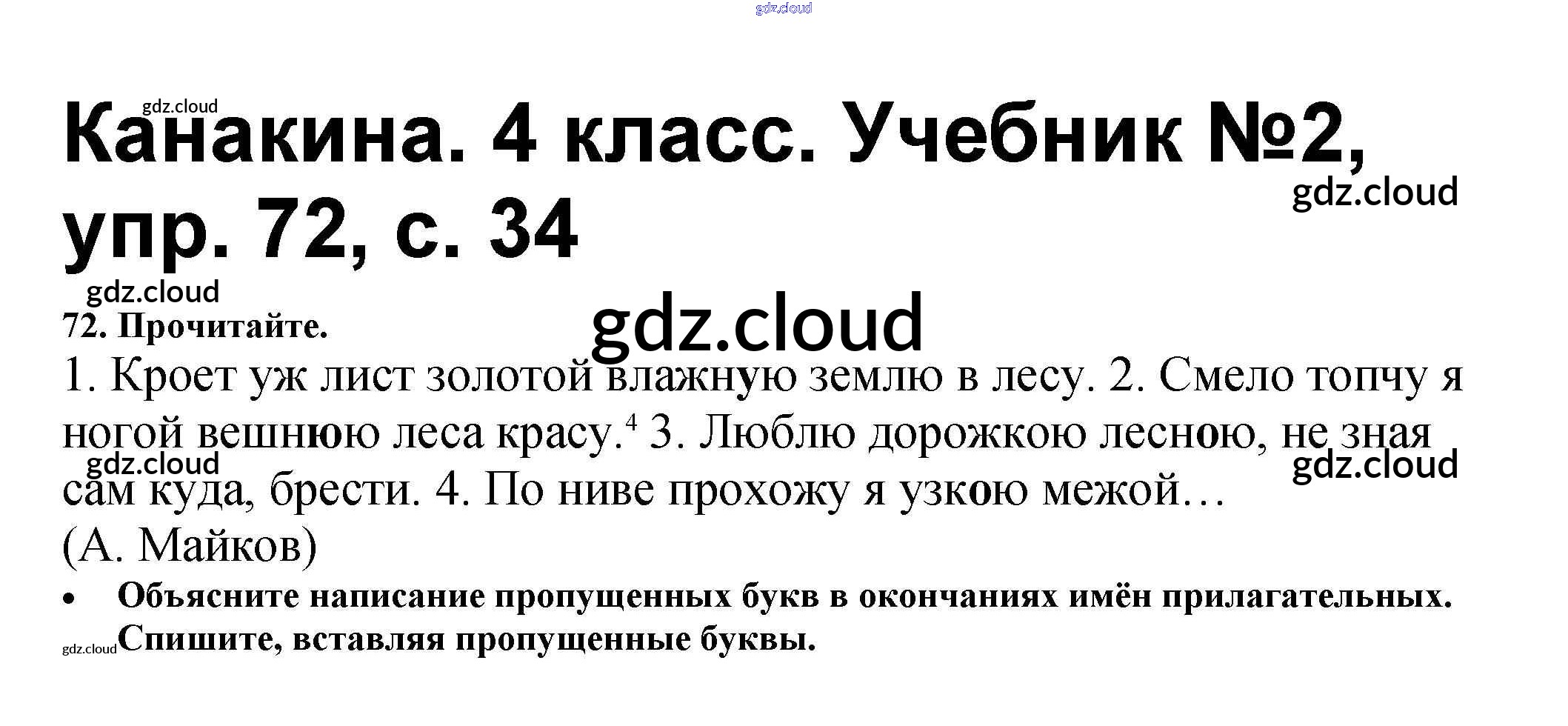 Ответ на задание 72 Учебник Русский язык за 4 (четвертый) класс Канакина, Горецкий Школа России 2015 Часть 1, 2