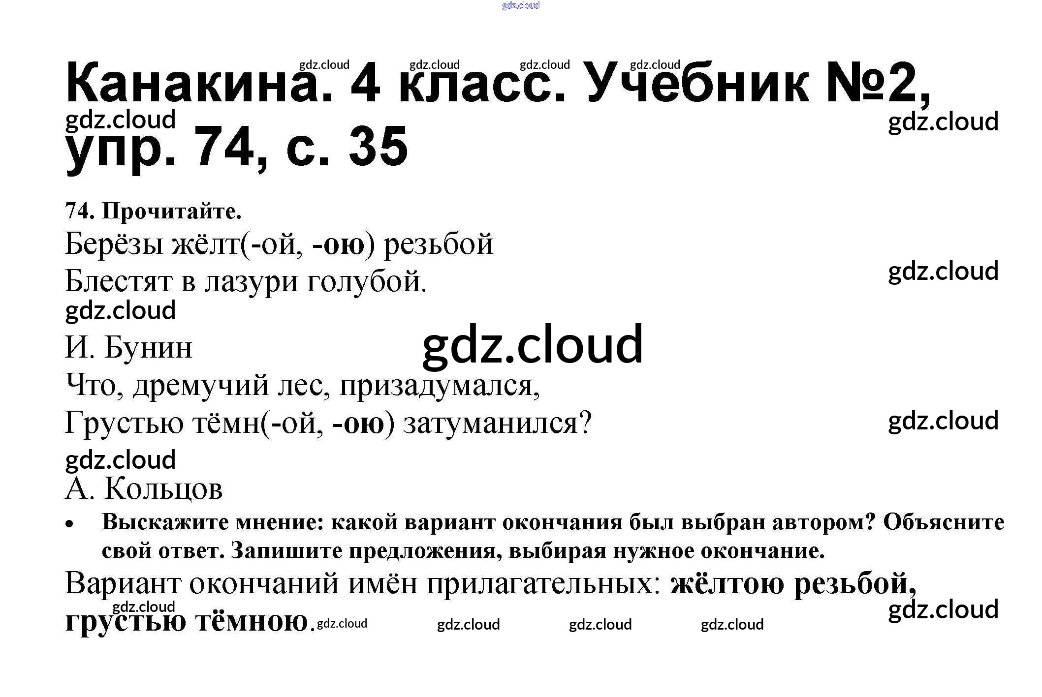 Ответ на задание 74 Учебник Русский язык за 4 (четвертый) класс Канакина, Горецкий Школа России 2015 Часть 1, 2
