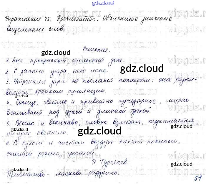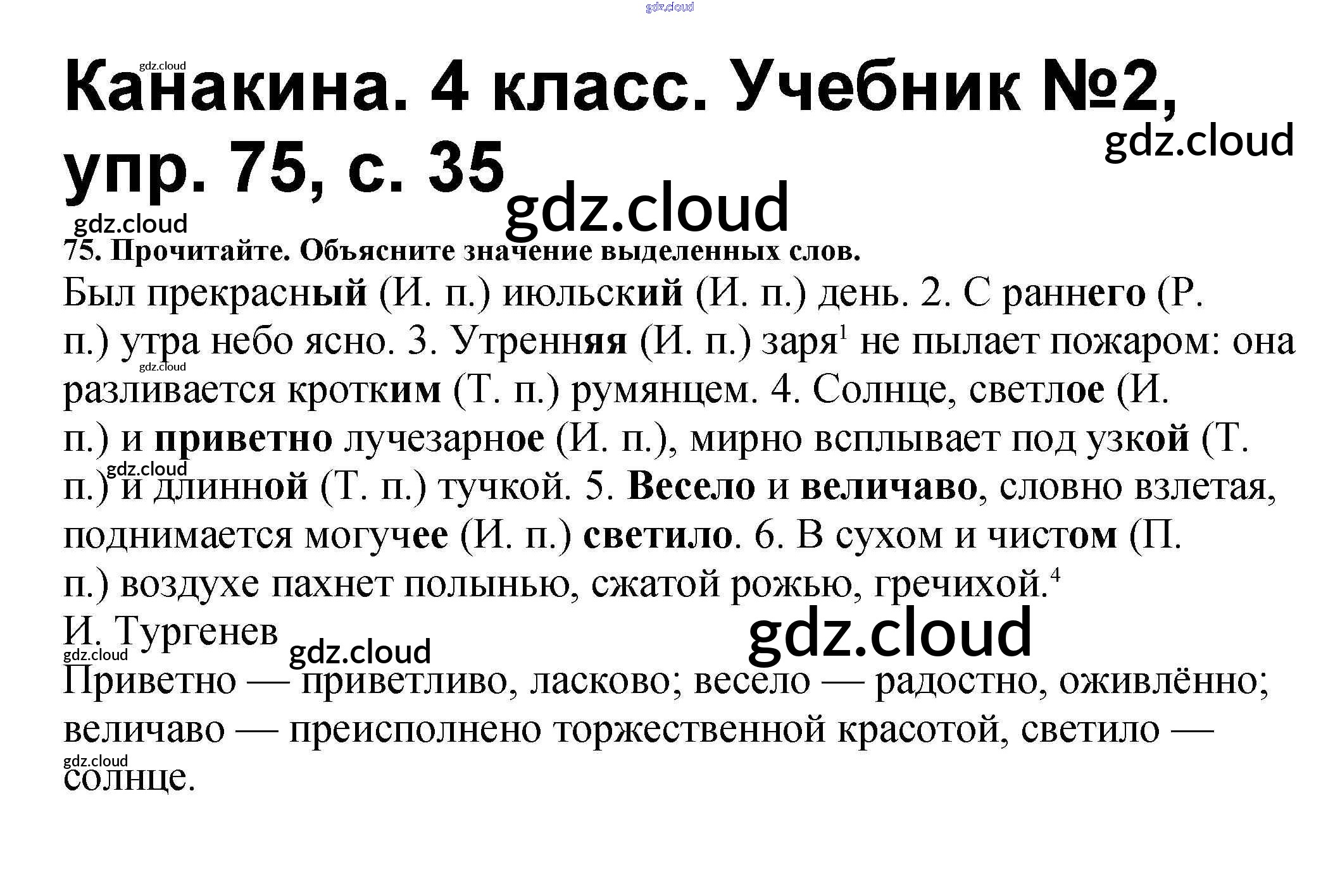 Ответ на задание 75 Учебник Русский язык за 4 (четвертый) класс Канакина, Горецкий Школа России 2015 Часть 1, 2