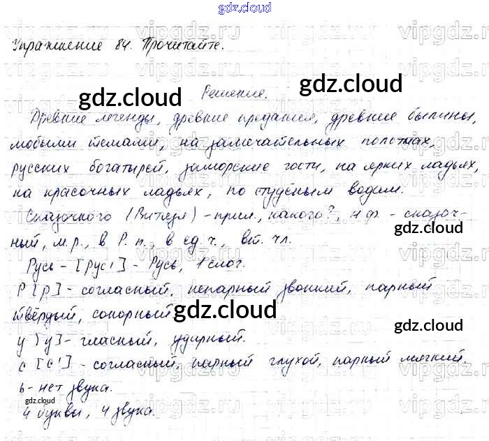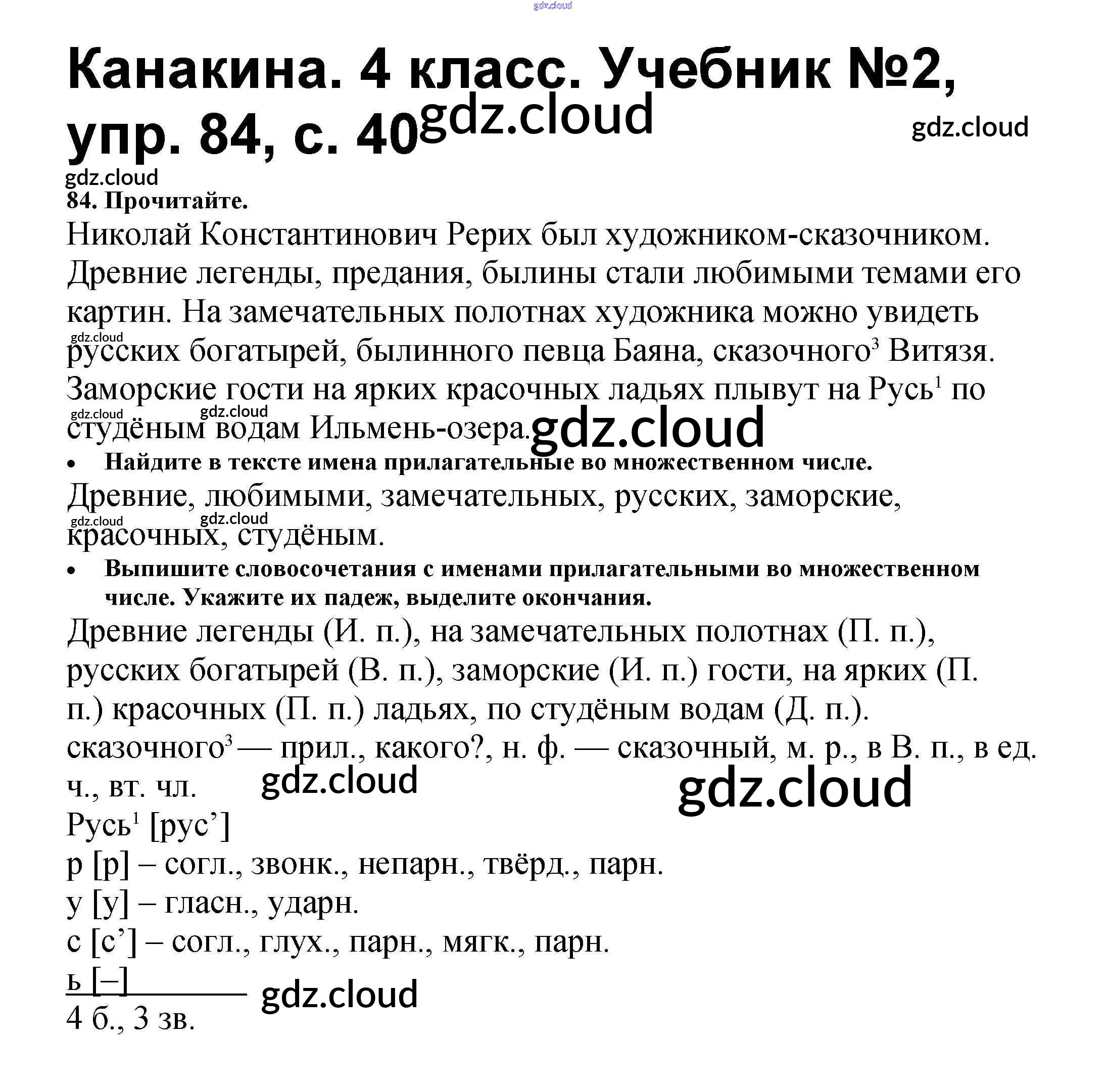 Ответ на задание 84 Учебник Русский язык за 4 (четвертый) класс Канакина, Горецкий Школа России 2015 Часть 1, 2
