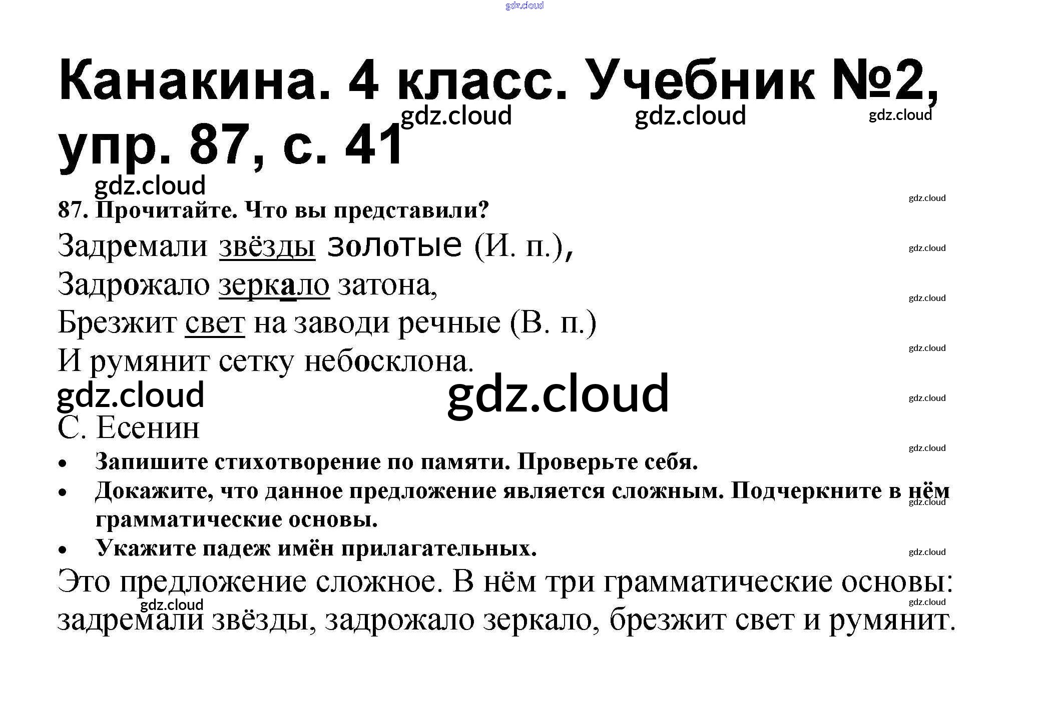 Ответ на задание 87 Учебник Русский язык за 4 (четвертый) класс Канакина, Горецкий Школа России 2015 Часть 1, 2