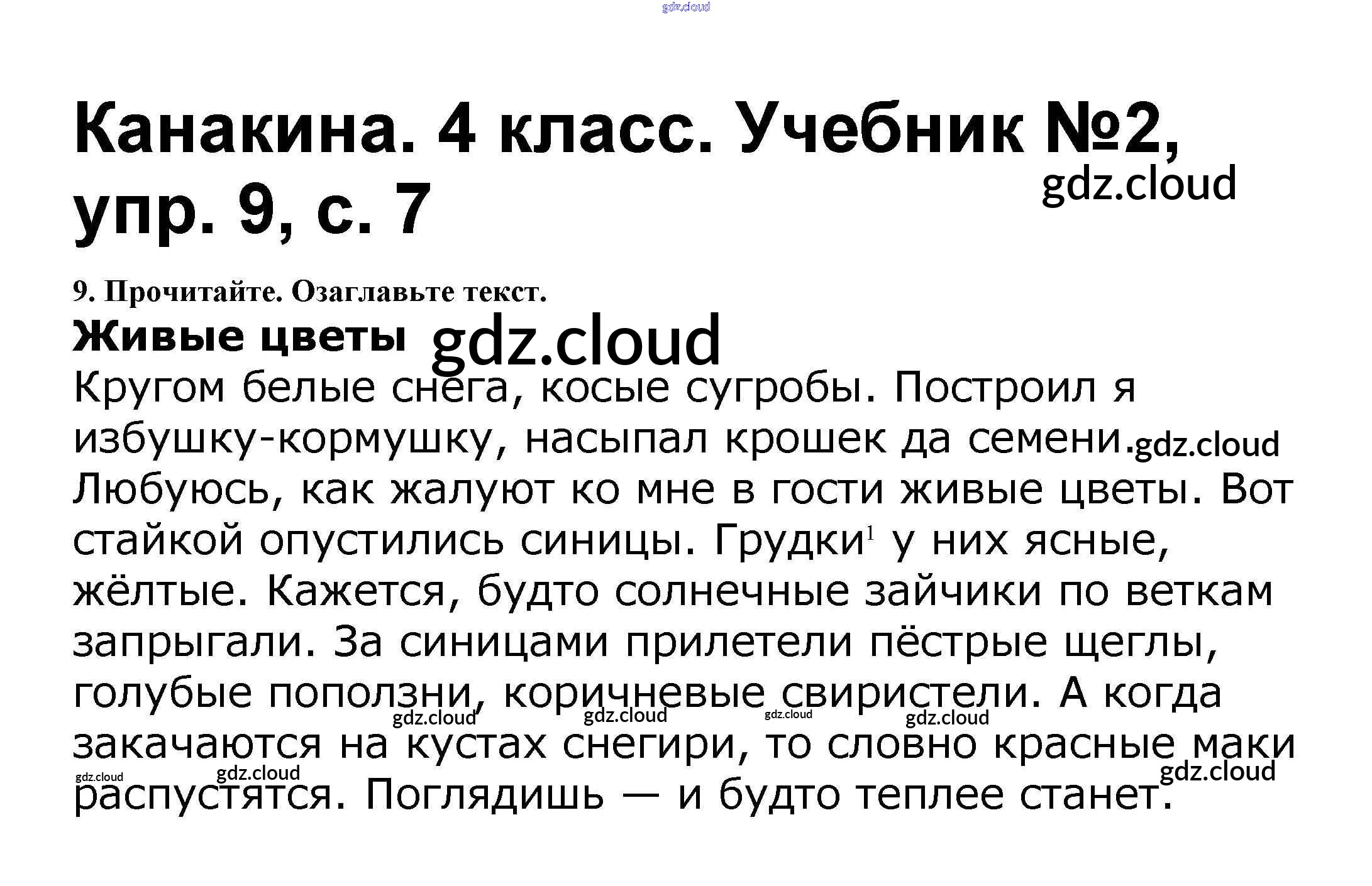 Ответ на задание 9 Учебник Русский язык за 4 (четвертый) класс Канакина, Горецкий Школа России 2015 Часть 1, 2