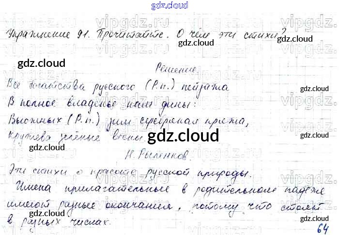 Ответ на задание 91 Учебник Русский язык за 4 (четвертый) класс Канакина, Горецкий Школа России 2015 Часть 1, 2