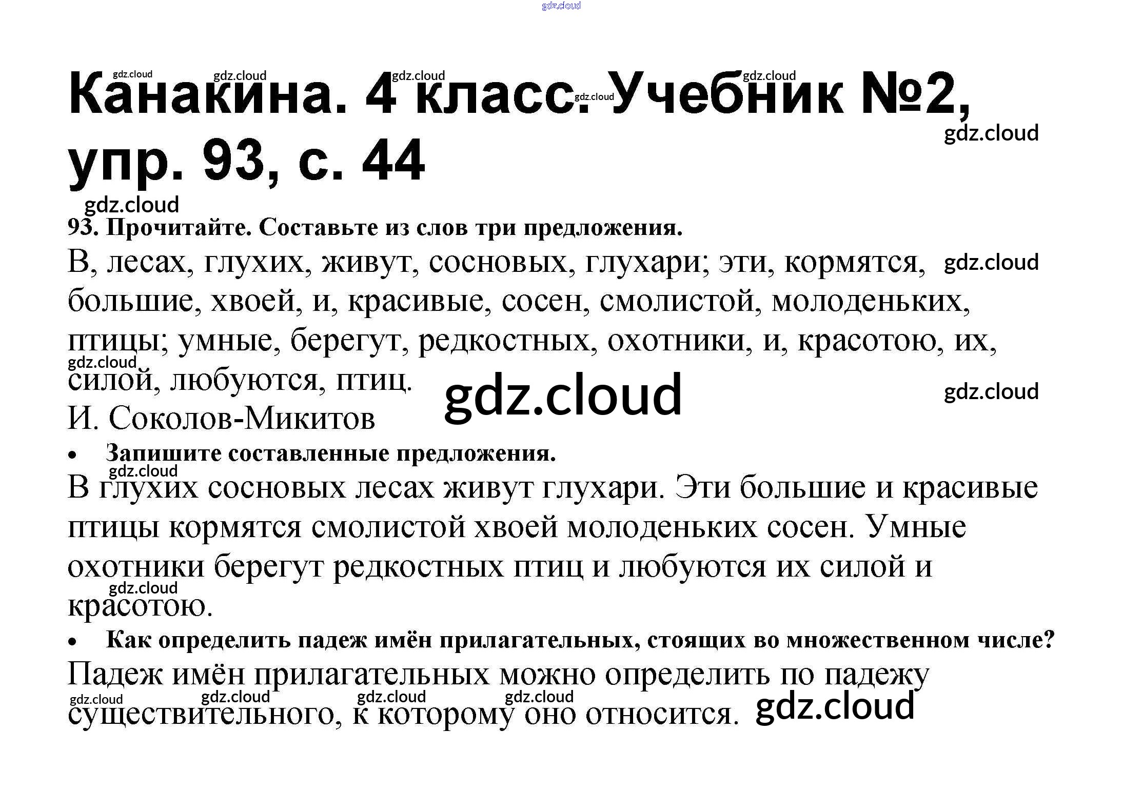 Ответ на задание 93 Учебник Русский язык за 4 (четвертый) класс Канакина, Горецкий Школа России 2015 Часть 1, 2