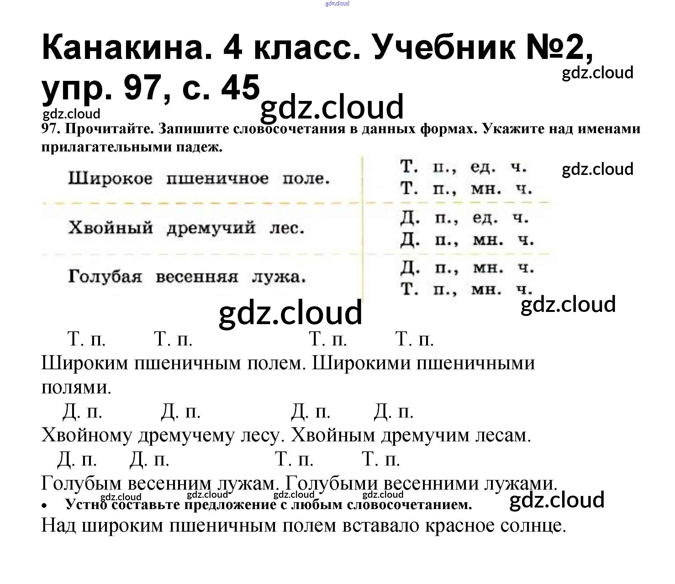 Ответ на задание 97 Учебник Русский язык за 4 (четвертый) класс Канакина, Горецкий Школа России 2015 Часть 1, 2