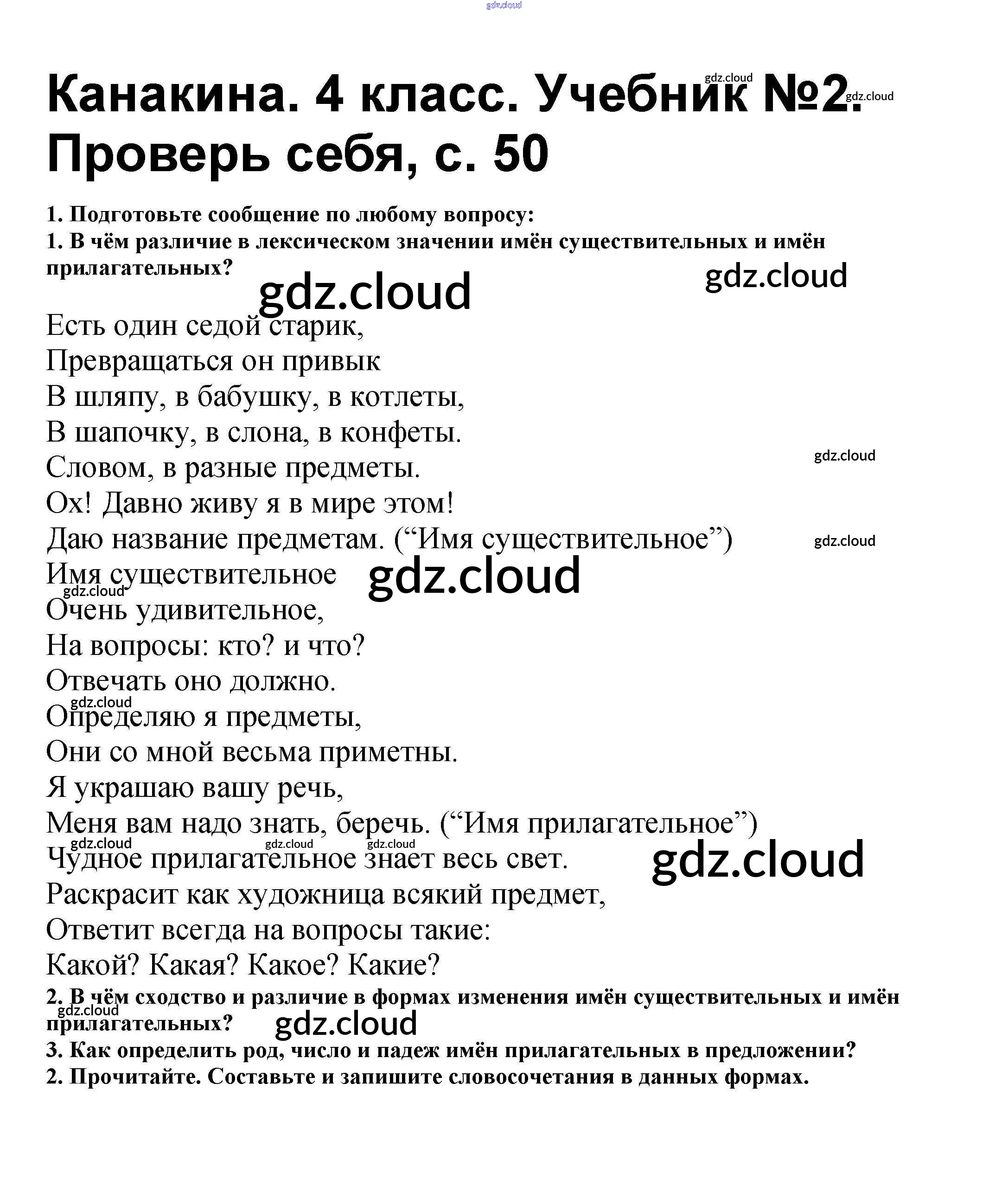 Ответ на задание 50 Учебник Русский язык за 4 (четвертый) класс Канакина, Горецкий Школа России 2015 Часть 1, 2
