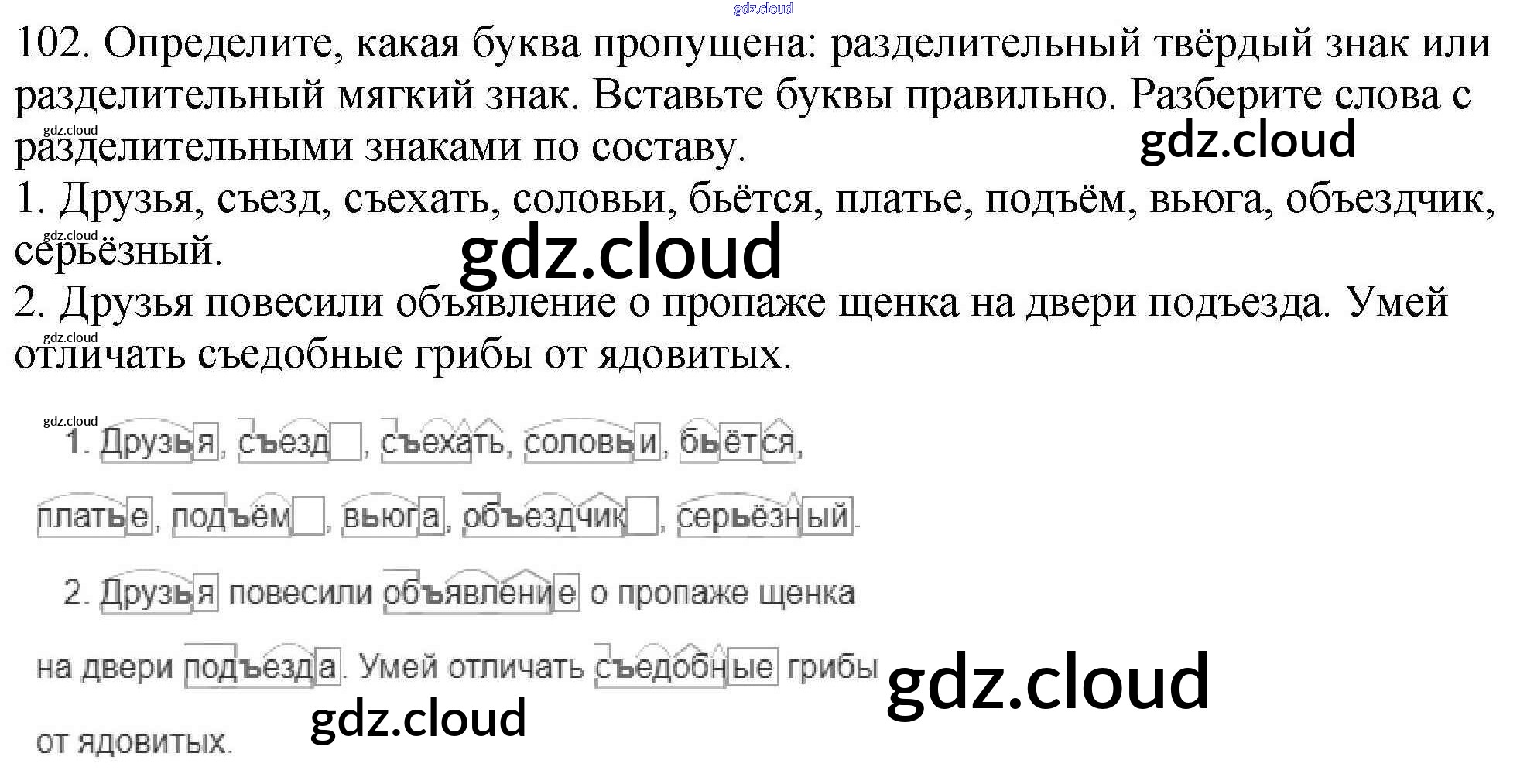 Ответ на задание 102 Рабочая тетрадь Русский язык за 4 (четвертый) класс Климанова Перспектива 2016 Часть 1, 2
