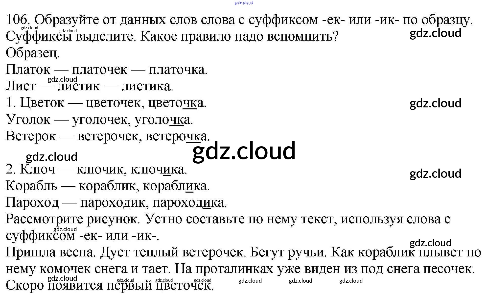 Ответ на задание 106 Рабочая тетрадь Русский язык за 4 (четвертый) класс Климанова Перспектива 2016 Часть 1, 2