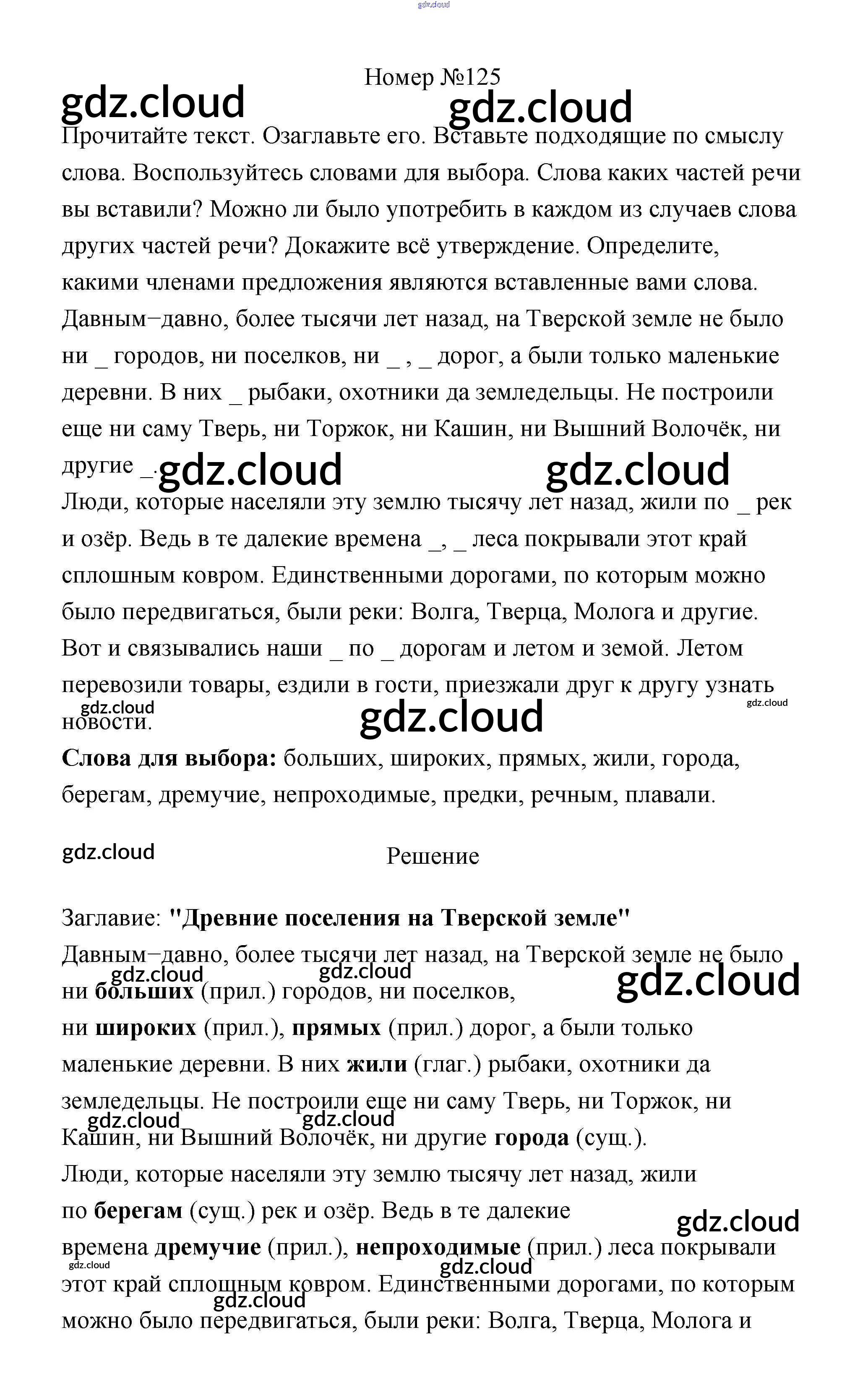 Ответ на задание 125 Рабочая тетрадь Русский язык за 4 (четвертый) класс Климанова Перспектива 2016 Часть 1, 2