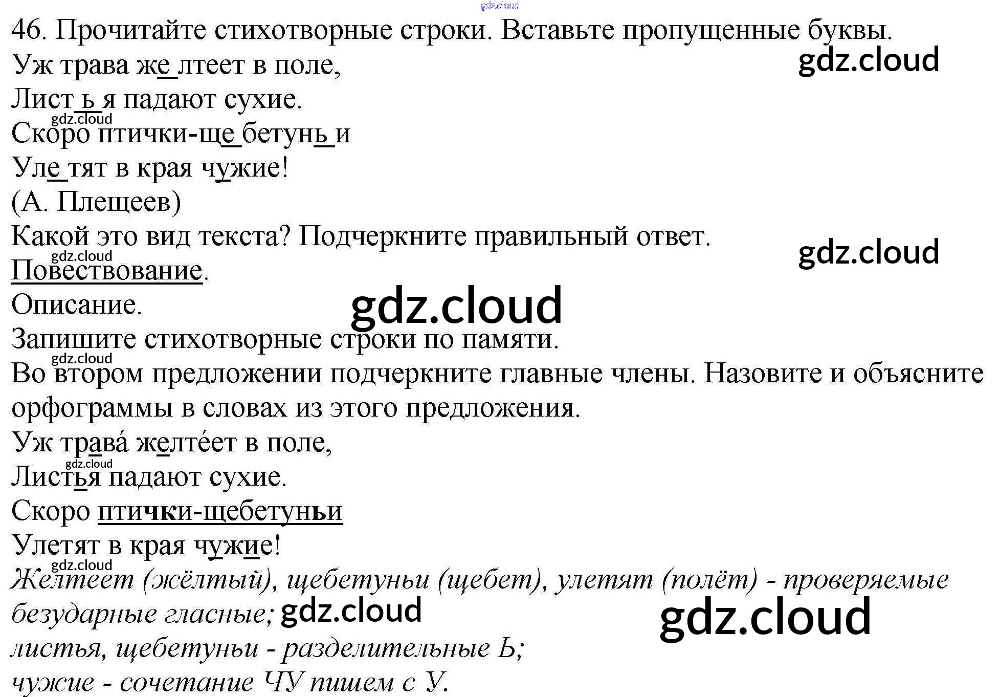 Ответ на задание 46 Рабочая тетрадь Русский язык за 4 (четвертый) класс Климанова Перспектива 2016 Часть 1, 2