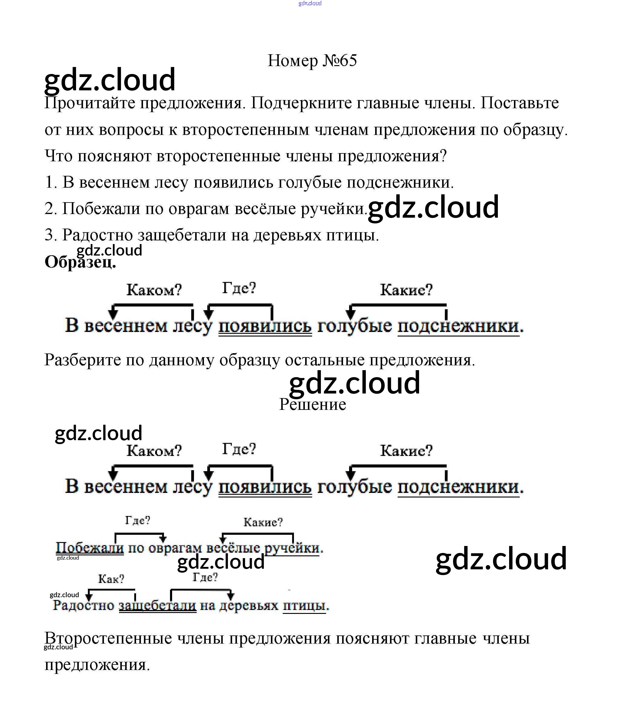 Ответ на задание 65 Рабочая тетрадь Русский язык за 4 (четвертый) класс Климанова Перспектива 2016 Часть 1, 2