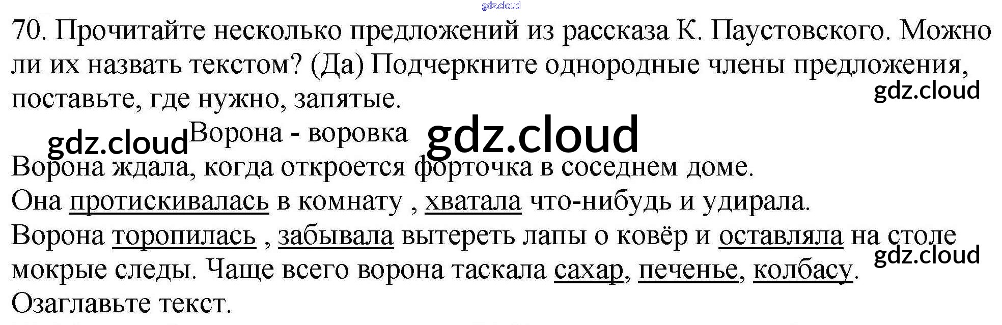Ответ на задание 70 Рабочая тетрадь Русский язык за 4 (четвертый) класс Климанова Перспектива 2016 Часть 1, 2