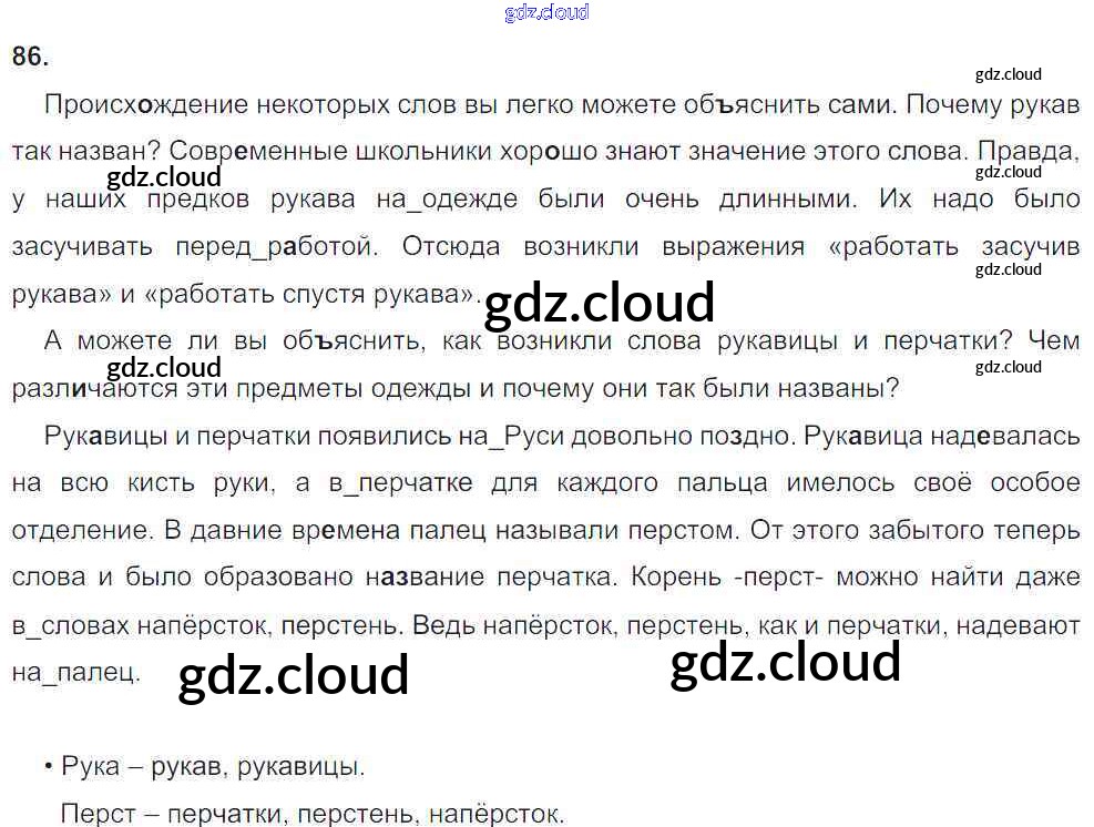 Ответ на задание 86 Рабочая тетрадь Русский язык за 4 (четвертый) класс Климанова Перспектива 2016 Часть 1, 2