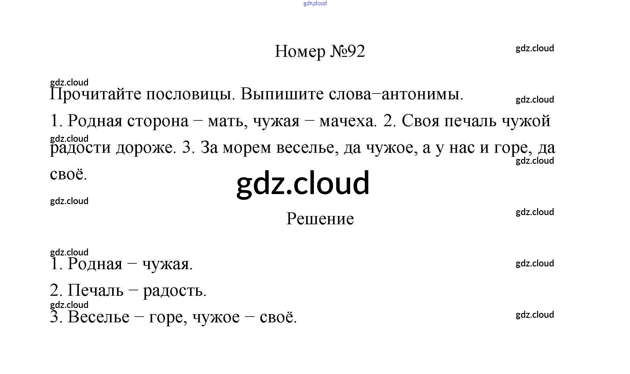 Ответ на задание 92 Рабочая тетрадь Русский язык за 4 (четвертый) класс Климанова Перспектива 2016 Часть 1, 2