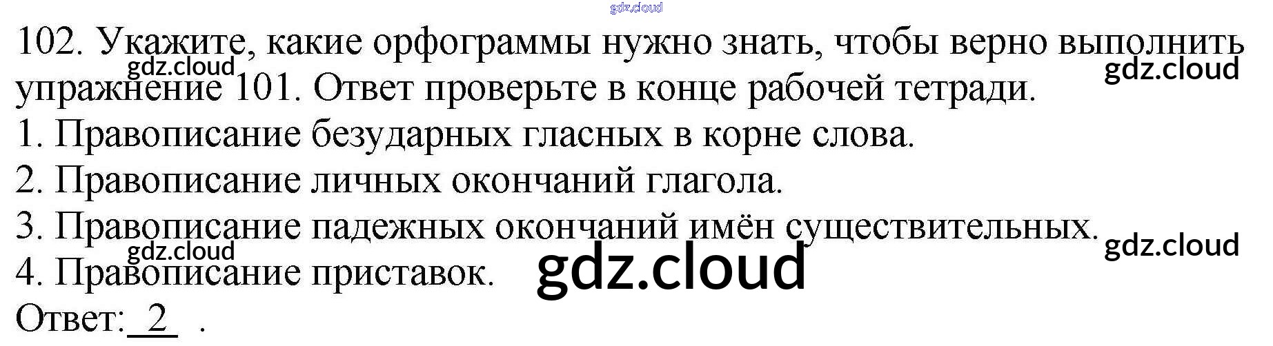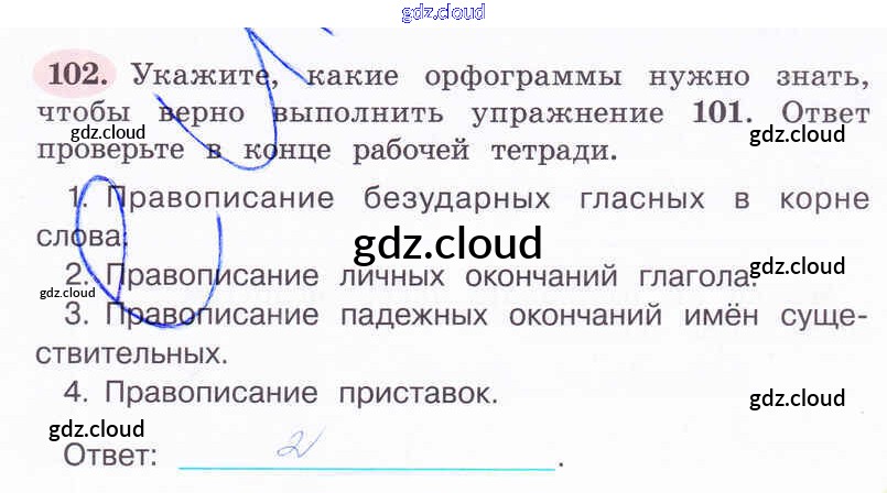 Ответ на задание 102 Рабочая тетрадь Русский язык за 4 (четвертый) класс Климанова Перспектива 2016 Часть 1, 2