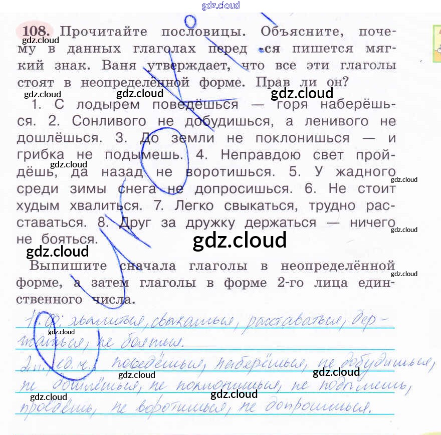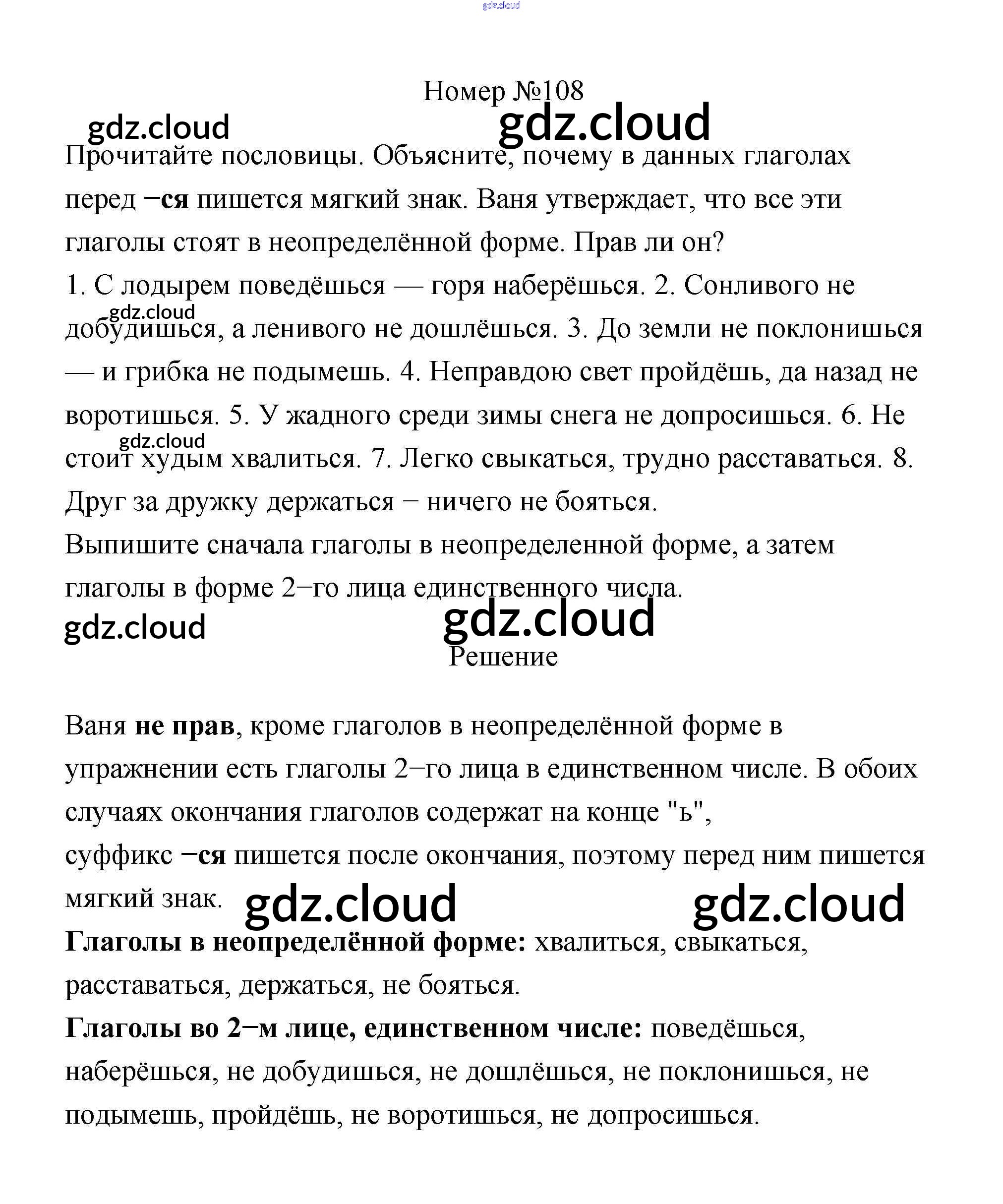 Ответ на задание 108 Рабочая тетрадь Русский язык за 4 (четвертый) класс Климанова Перспектива 2016 Часть 1, 2